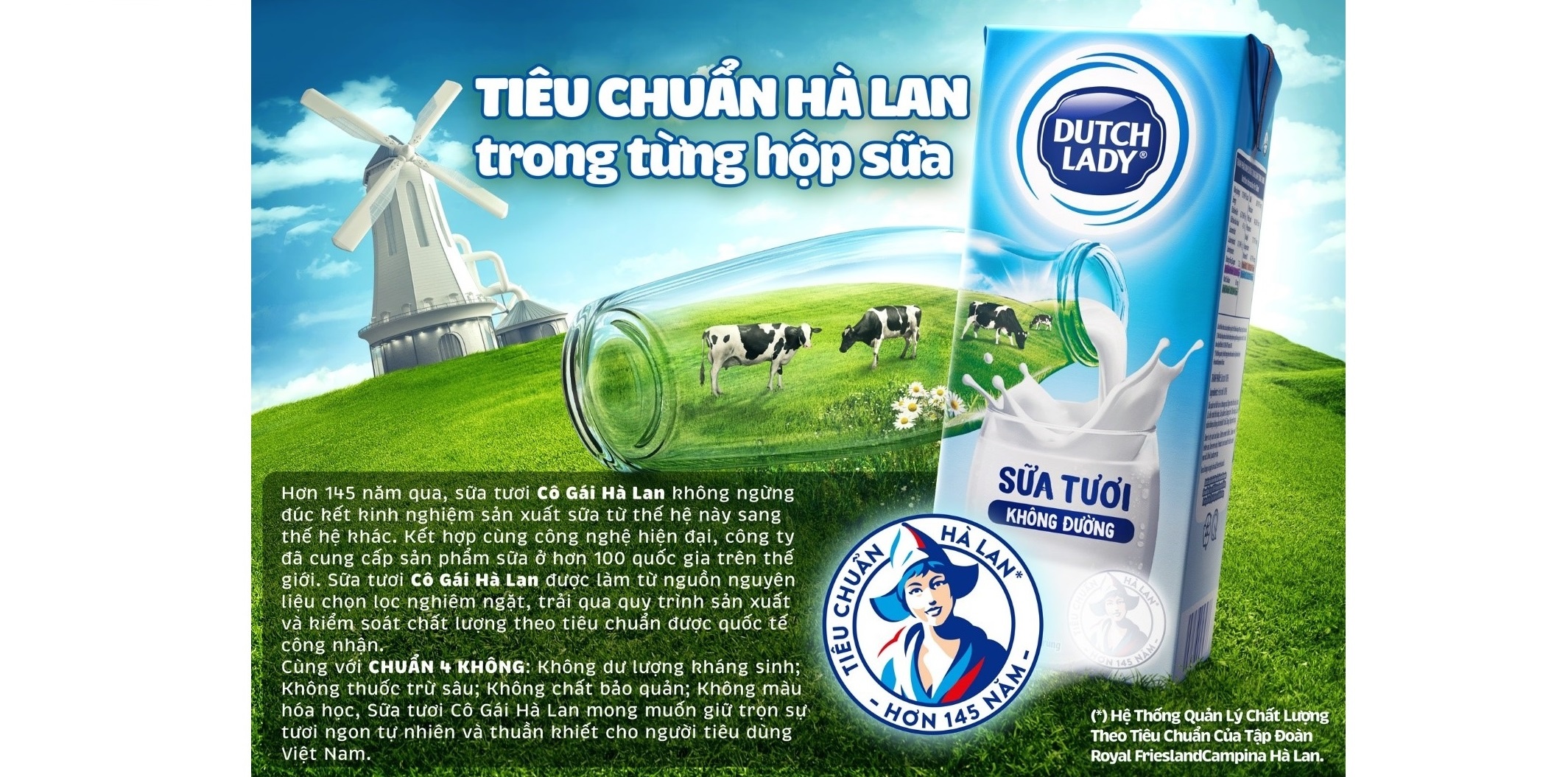 | Bằng sự khắt khe trong từng khâu nhỏ nhất như vật dụng chứa sữa, thời gian vắt và vận chuyển, dòng sữa Cô Gái Hà Lan khi đến tay người dùng là sản phẩm đạt chuẩn chất lượng Hà Lan và có giá trị dinh dưỡng cao. Chưa dừng lại ở đó, quy chuẩn thu gom và kiểm tra nghiêm ngặt này được Cô Gái Hà Lan áp dụng đồng nhất cho hàng chục nghìn hộ chăn nuôi tại hơn 100 quốc gia mà hãng hiện diện, bao gồm Việt Nam. |