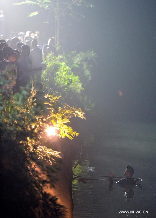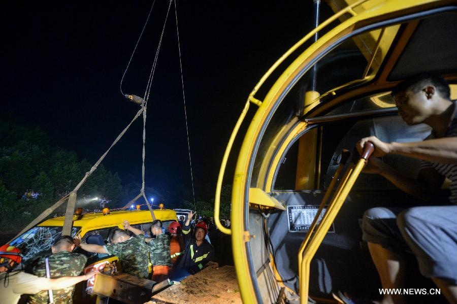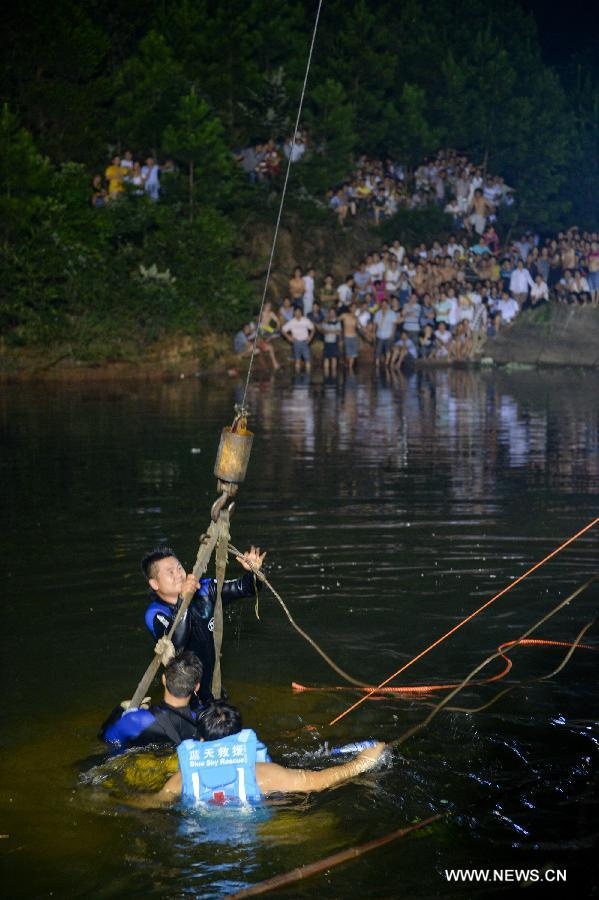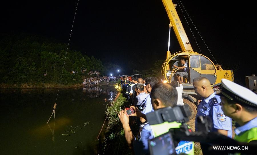 | Khoảng 3h sáng hôm 11/7, đội cứu hộ đã vớt chiếc xe bus lên khỏi mặt ao cùng thi thể của 8 trẻ nhỏ và người lái xe. Một giờ sau họ tìm thấy thi thể của hai giáo viên. |