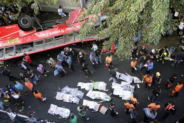 Những hình ảnh trên truyền hình cho thấy nhiều thi thể nằm xung quanh đống đổ nát của chiếc xe bus. Ivy Vidal, phát ngôn viên của cơ quan quản lý Skyway, cho biết, tai nạn xảy ra khi đường ướt vì trời mưa, song ông chưa biết nguyên nhân.