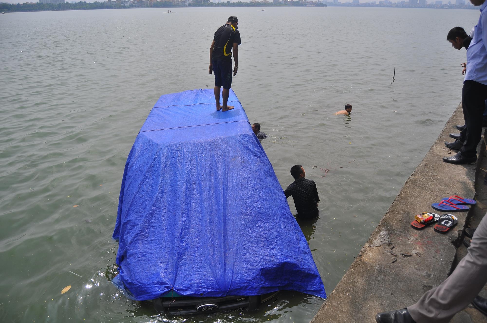 | Chiếc xe ô tô lao xuống hồ Tây sáng 15/9. Ảnh: Otofun. |