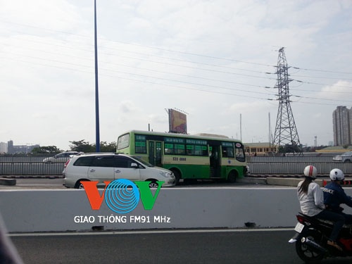 Vào khoảng 9h ngày 1/2 (mùng 2 tết) chiếc xe buýt chạy tuyến số 604 mang BKS: 53S- 0066 lưu thông trên cầu Sài Gòn 1 theo hướng từ quận 2 về quận Bình Thạnh khi vừa đổ dốc cầu thì bất ngờ chiếc xe bị gẫy trục, bánh xe rơi ra ngoài khiến tài xế xe mất lái đã đâm văng nhiều dải phân cách trên cầu rồi nằm chắn giữa đường.