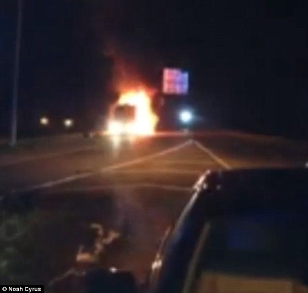 Hình ảnh bốc cháy dữ dội của chiếc xe buýt đi tour Bangerz của Miley.