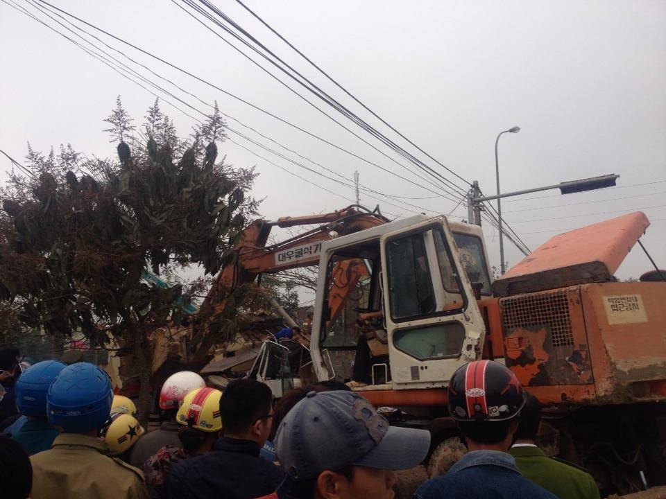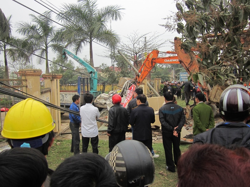 20h, hiện trường vẫn là đống ngổn ngang, công tác cứu hộ đã tạm dừng. Xe cẩu bị đè bẹp vẫn chưa được di dời. Cơ quan chức năng bước đầu xác định, cần cẩu không hạ là nguyên nhân làm sập cổng trung tâm văn hóa huyện dẫn tới tai nạn thảm khốc.