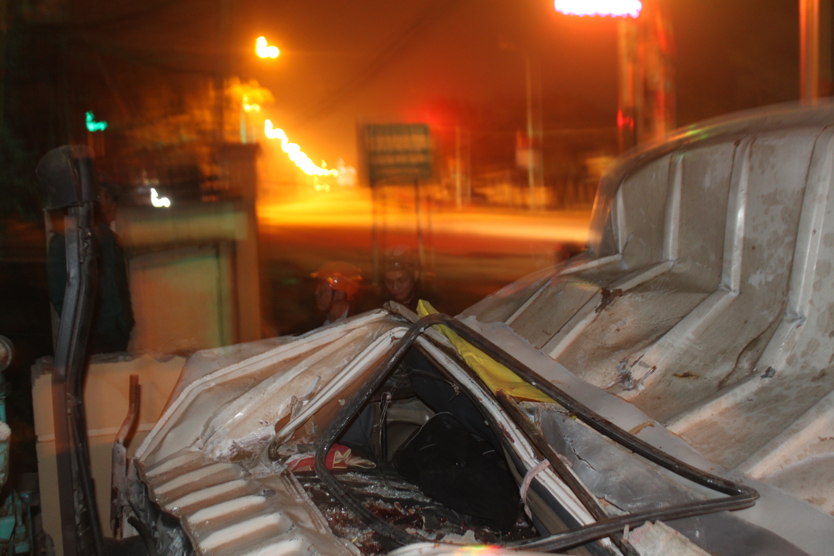 | Lúc này trên xe có 3 người, trong đó 2 người là cha con, tất cả đều bị bê tông đè bẹp, tử vong tại chỗ. |