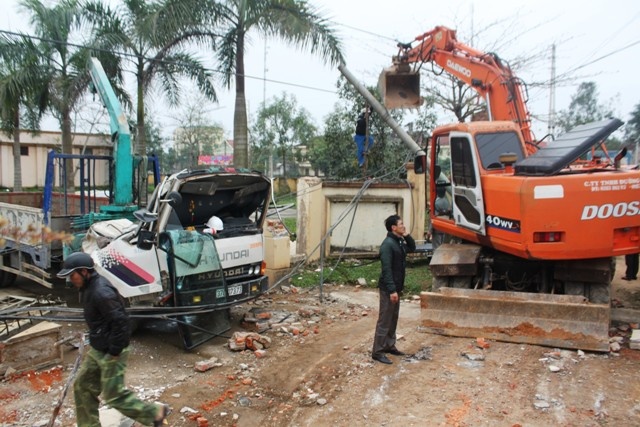 Khoảng 14h ngày 5/3, một vụ tai nạn nghiêm trọng xảy ra tại trung tâm văn hóa huyện Yên Thành. Thời điểm trên, chiếc xe tải cẩu chở bàn, ghế vào trung tâm văn hóa để tổ chức đám cưới cho một hộ dân. Khi quay ra, do tài xế quên hạ tay nâng, cần cẩu đã va vào cổng khiến khối bê tông đổ sập xuống đè lên cabin chiếc xe.