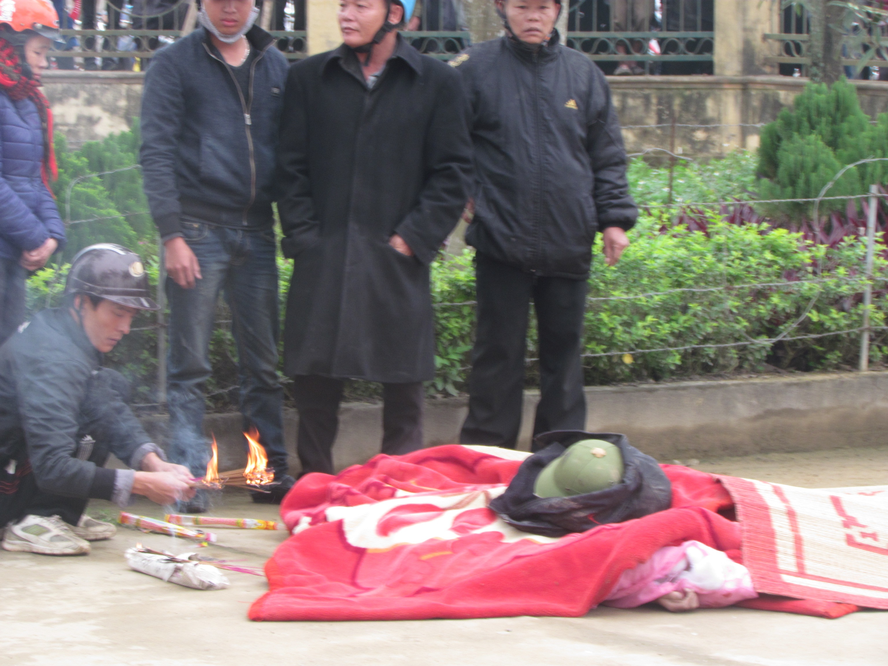 | Người nhà nhận thi thể nạn nhân đưa về mai táng. |