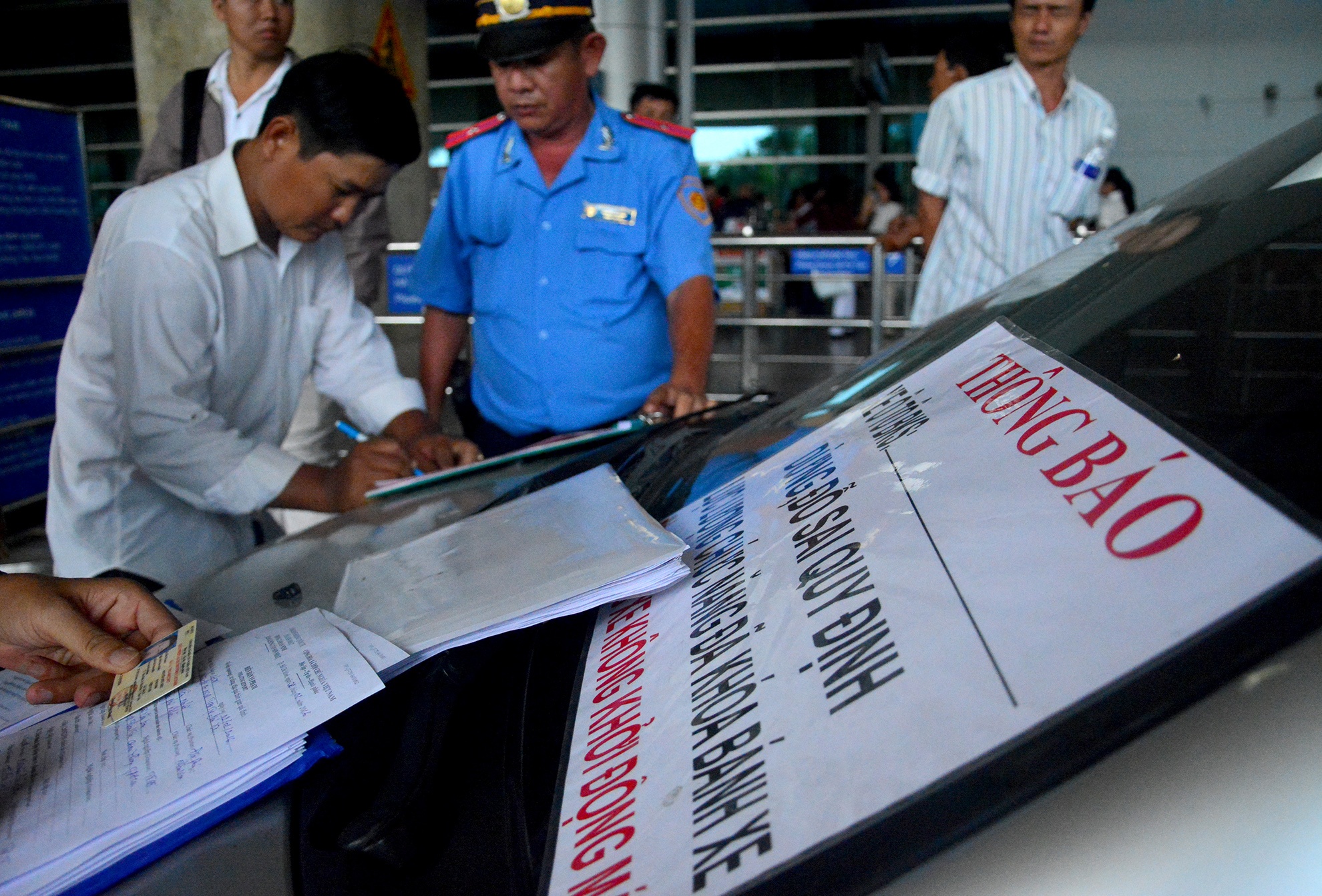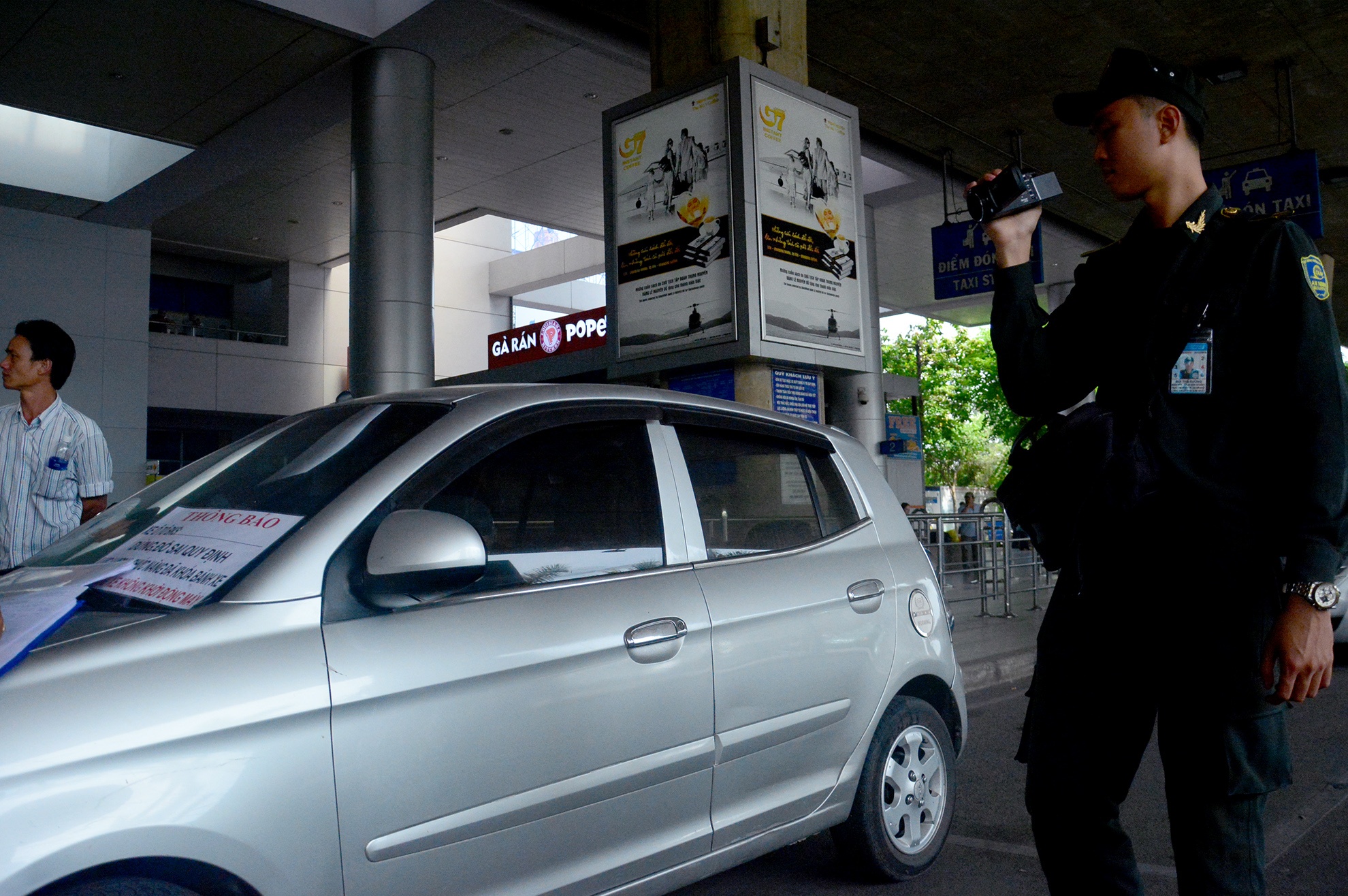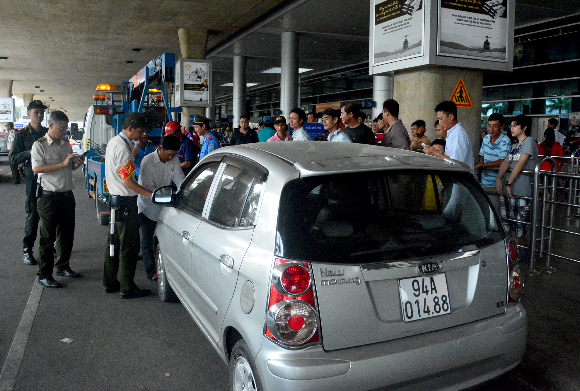 | Thanh tra giao thông, an ninh sân bay và tài xế vi phạm cùng ký biên bản vi phạm hành chính, đồng thời cho xe cẩu vào để tiến hành "bốc" ôtô vi phạm đi. |