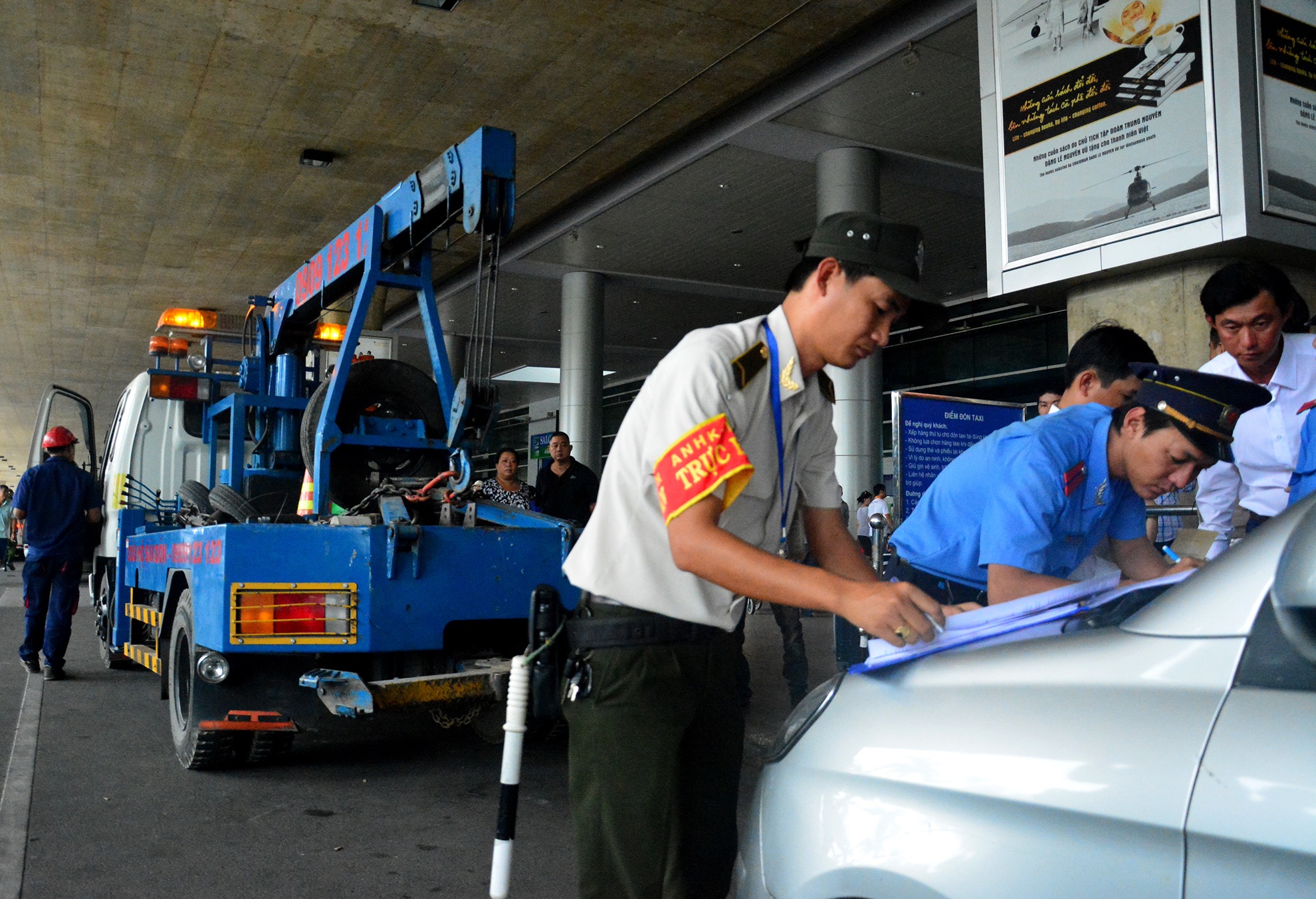 Trong 3 ngày cao điểm, cơ quan chức năng đã 9 lần điều xe cứu hộ đưa ôtô vi phạm dừng, đỗ sai quy định ra khỏi khu vực ga hàng không Tân Sơn Nhất (TP HCM).