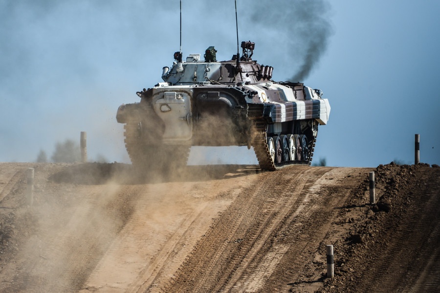 Xe chiến đấu bộ binh của Lục quân Nga tham gia Thế vận hội quân đội ở căn cứ Alabino, ngoại ô thủ đô Moscow. Đây là giải đấu quân sự quy mô nhất thế giới hiện nay, bao gồm nhiều nội dung từ dựng cầu phao đến vận chuyển vũ khí bằng những xe lội nước chuyên dụng.