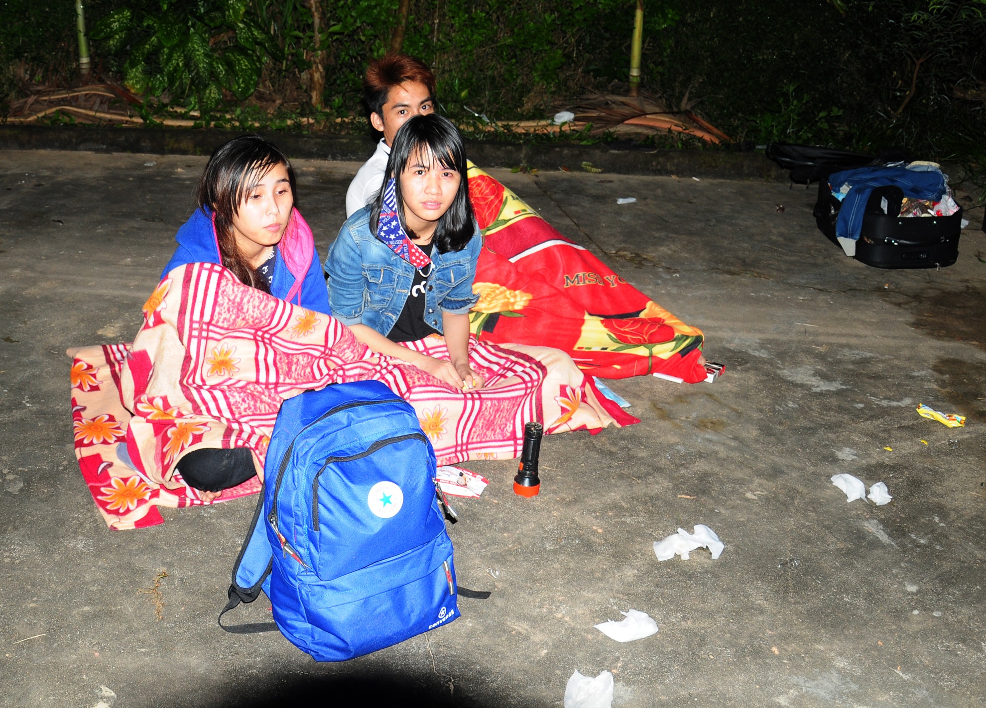 | Những hành khách may mắn thoát nạn vật vờ thức trắng bên đường chờ nhà xe giải quyết vụ việc.