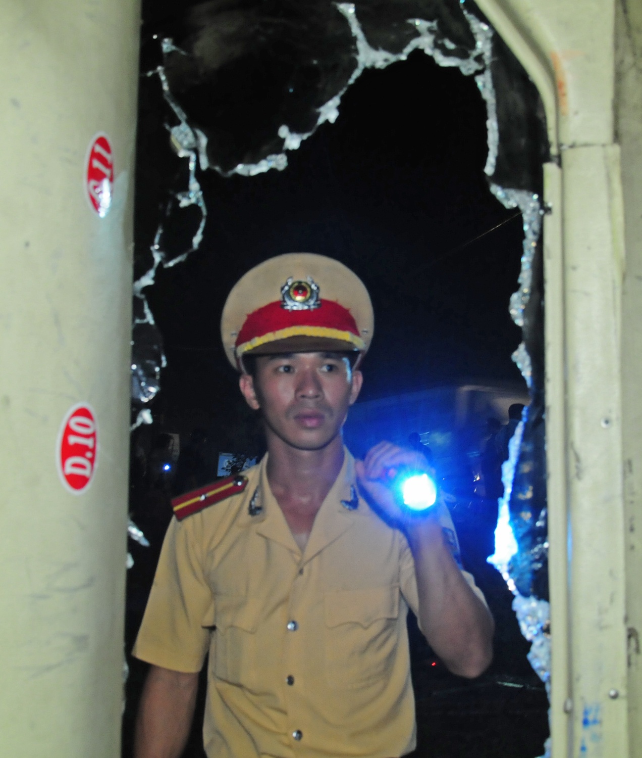 | Kính xe khách bể nát. |