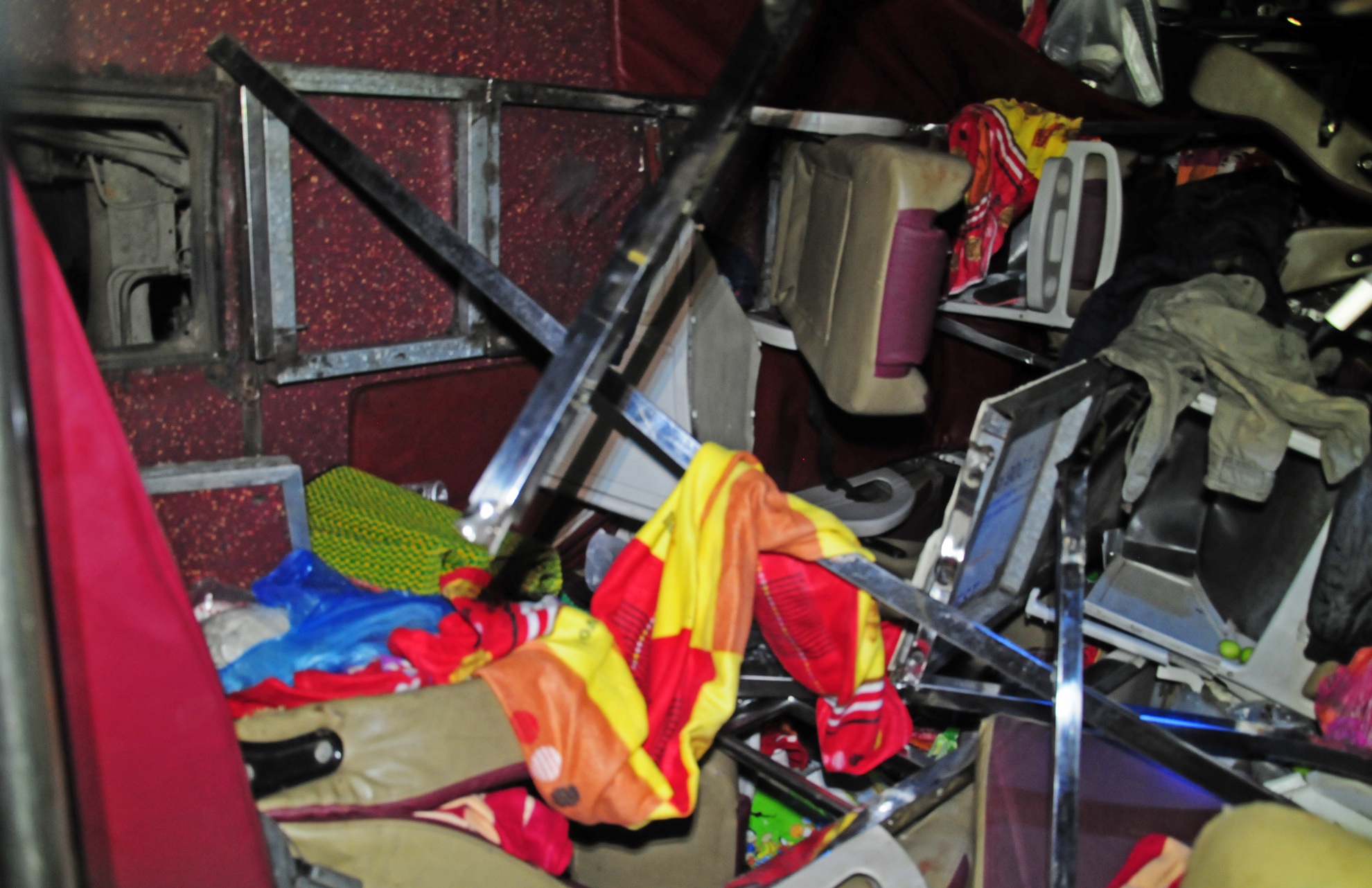 | Sau cú lao xuống vực và trượt chừng 30 mét rồi lật ngang, xe vỡ nát. Hành khách la hét hoảng loạn, người dân địa phương chạy đến dùng cây gỗ, búa đập kính giải thoát hàng chục người đưa đi cấp cứu. |