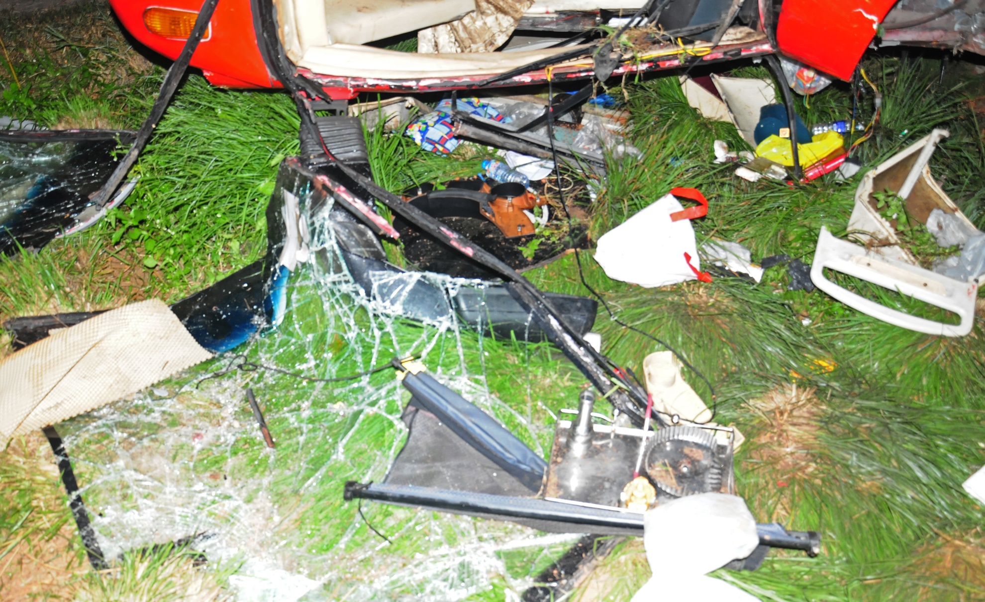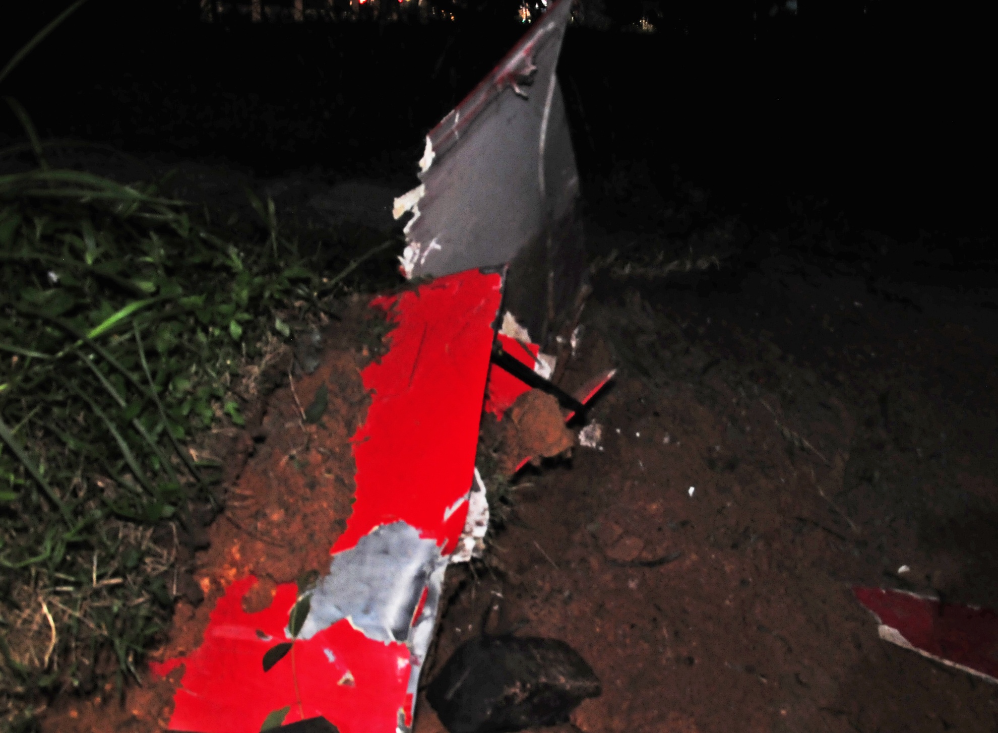 | Một mảnh nhôm bị đứt lìa nằm vương vãi dưới vực phía Nam cầu Cháy. |