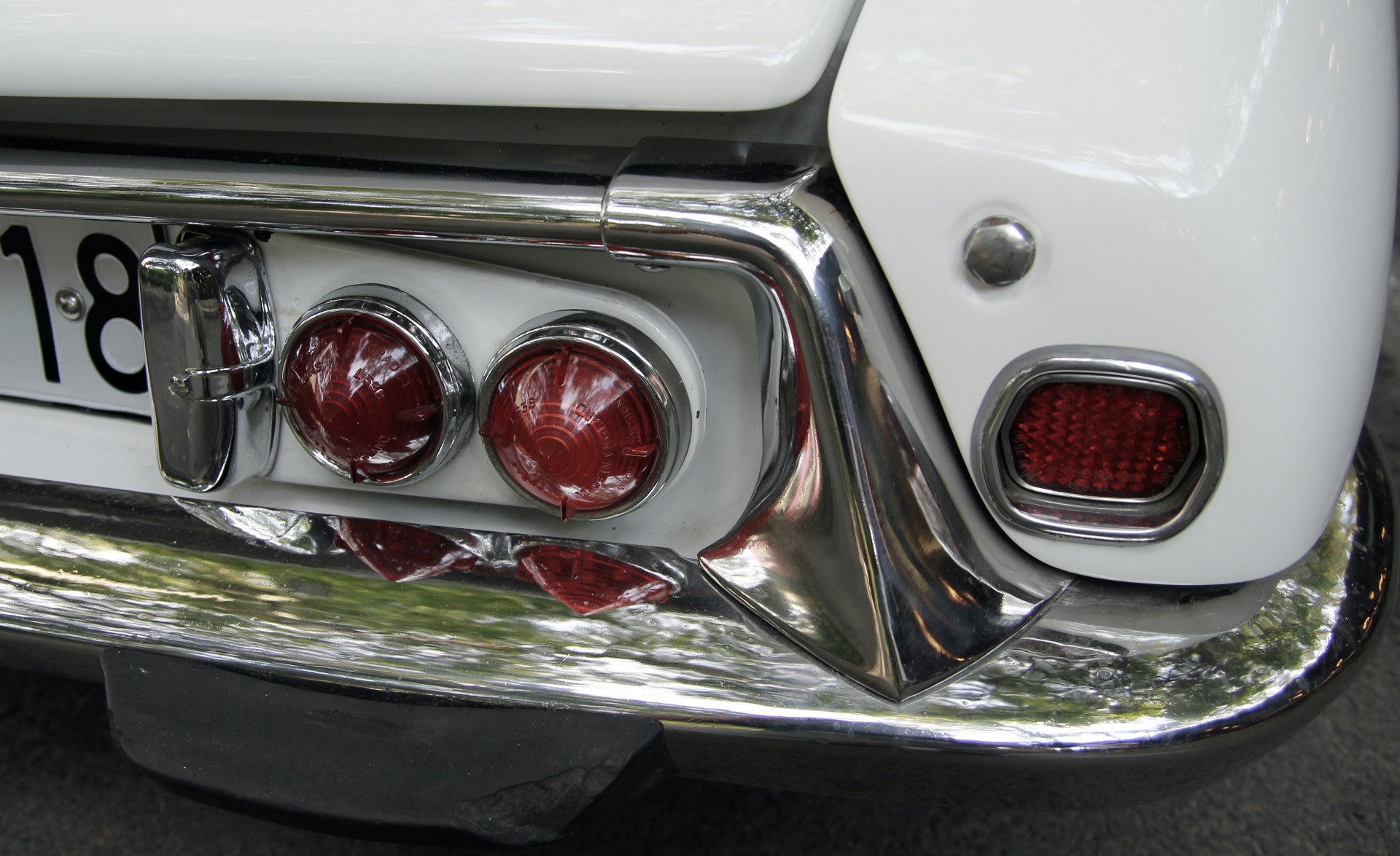 Cụm đèn hậu với cản sau mạ chrome sáng loáng, đây là kiểu rất thịnh hành trên những chiếc xe sang trọng thập niên 50 - 60 của thế kỷ trước.