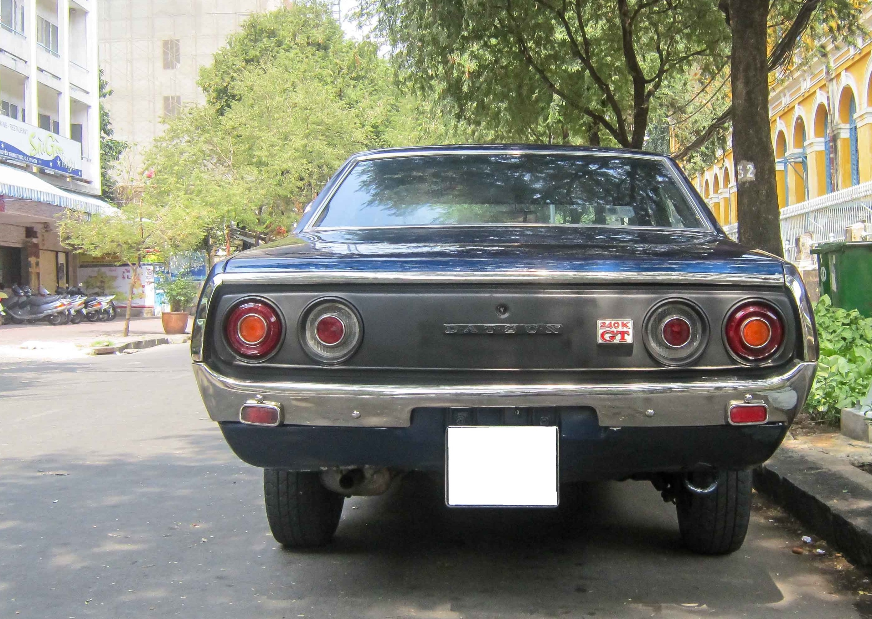 | Một chiếc Datsun 240K GT, hay còn gọi là Skyline C110, được bắt gặp trên đường Nguyễn Trung Trực, quận 1, TP HCM. Mẫu xe này lần đầu được giới thiệu vào tháng 9/1972, bao gồm nhiều phiên bản như sedan bốn cửa, hai cửa coupe và wagon. Mỗi thế hệ có tên gọi khác nhau, như C110, GC110 Skyline hay Datsun 160K, 180K, Datsun 240K. |
