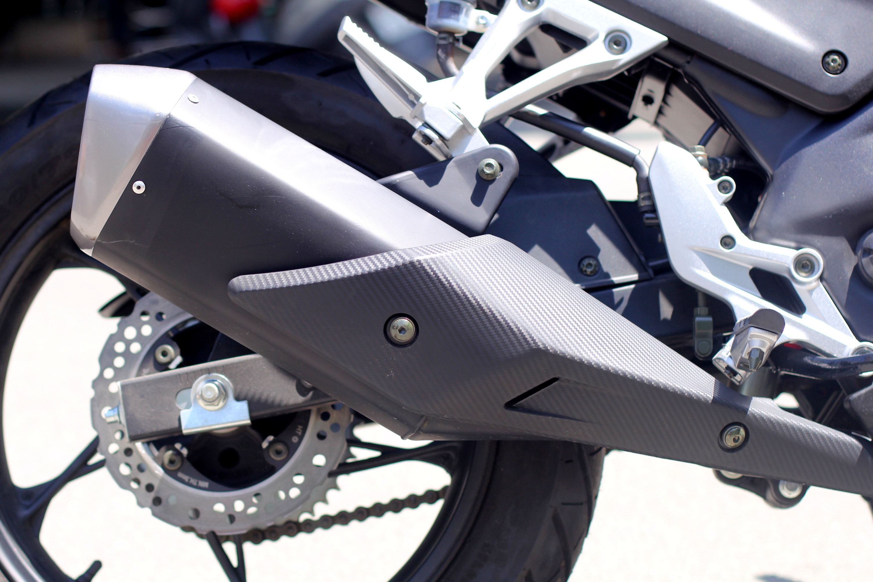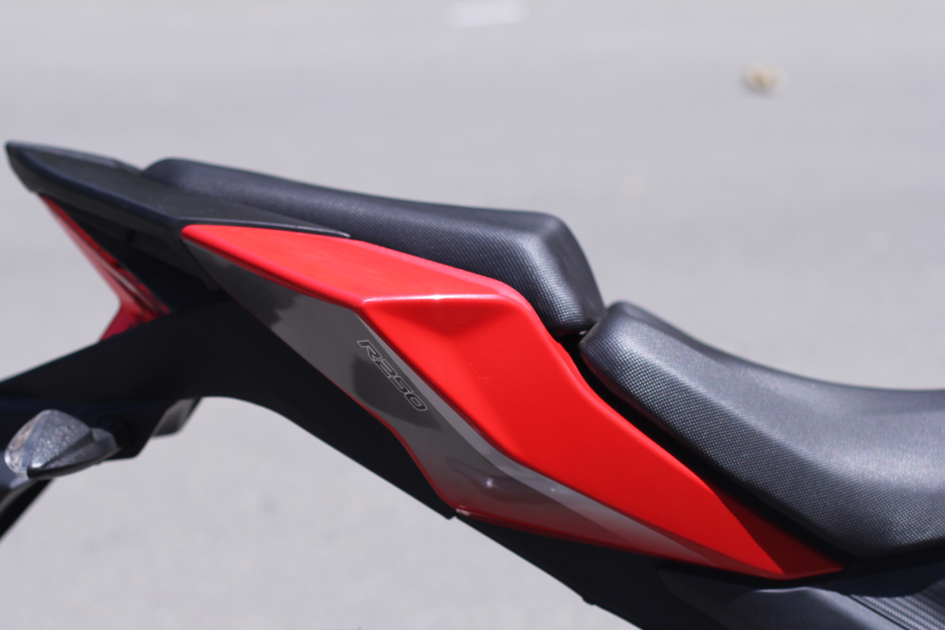 | Bình xăng R250 có dung tích 16 lít, thiết kế hẹp bên hông tạo cảm giác không bị cấn đùi khi lái xe. |