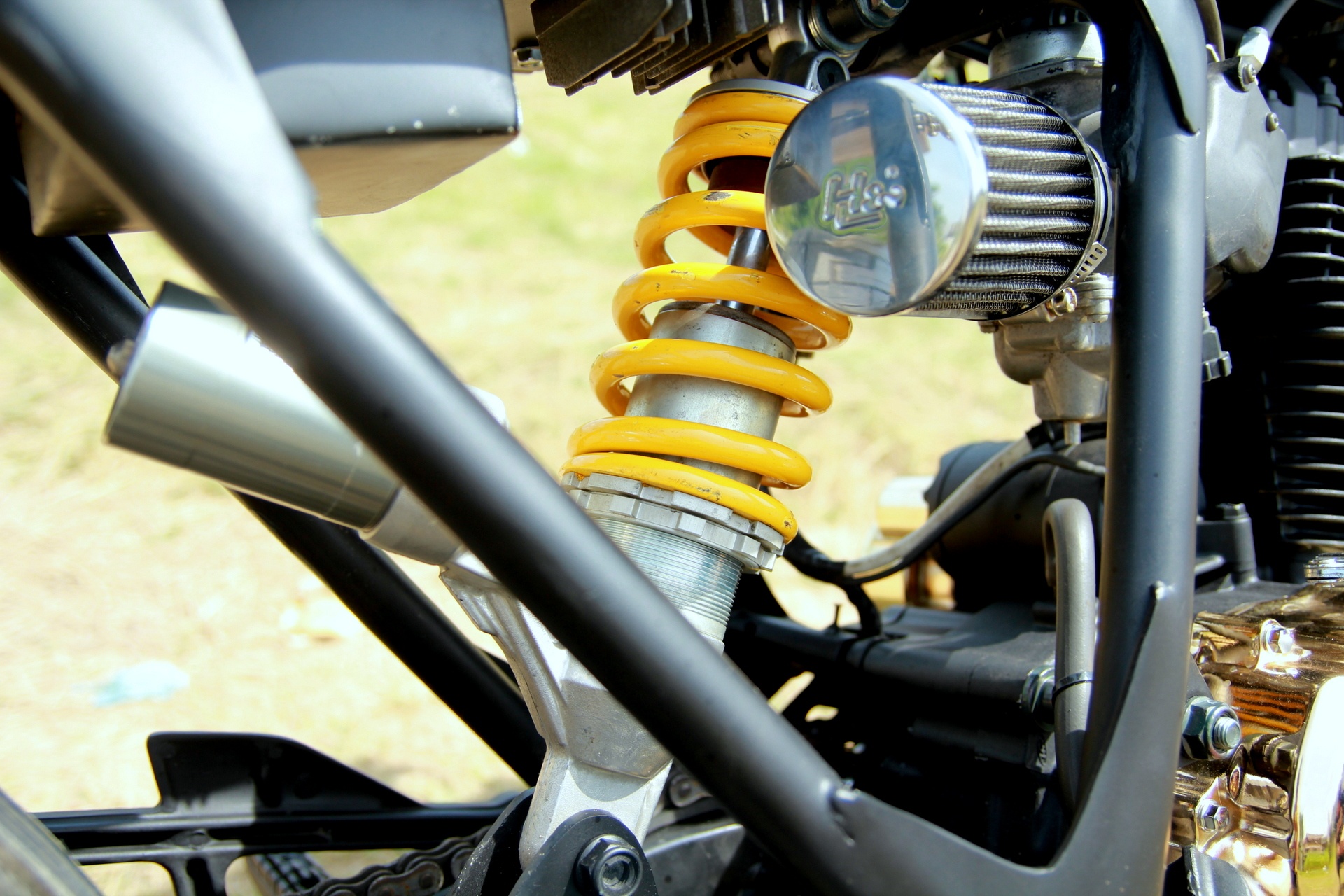 | Giảm chấn phía sau dạng monoshock hiệu Showa, được lấy từ giảm sốc sau của Ducati 1098. |