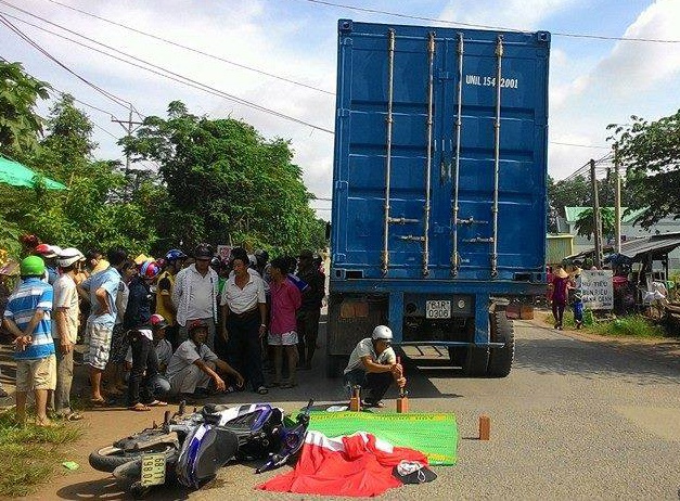 Khi đến điểm trên, xe của Yến xảy ra va chạm với xe máy chạy ngược chiều khiến chị ngã xuống đường. Nạn nhân chưa kịp đứng dậy thì bị xe container BKS 61L (chưa rõ tài xế) lưu thông cùng chiều lao tới cán tử vong.