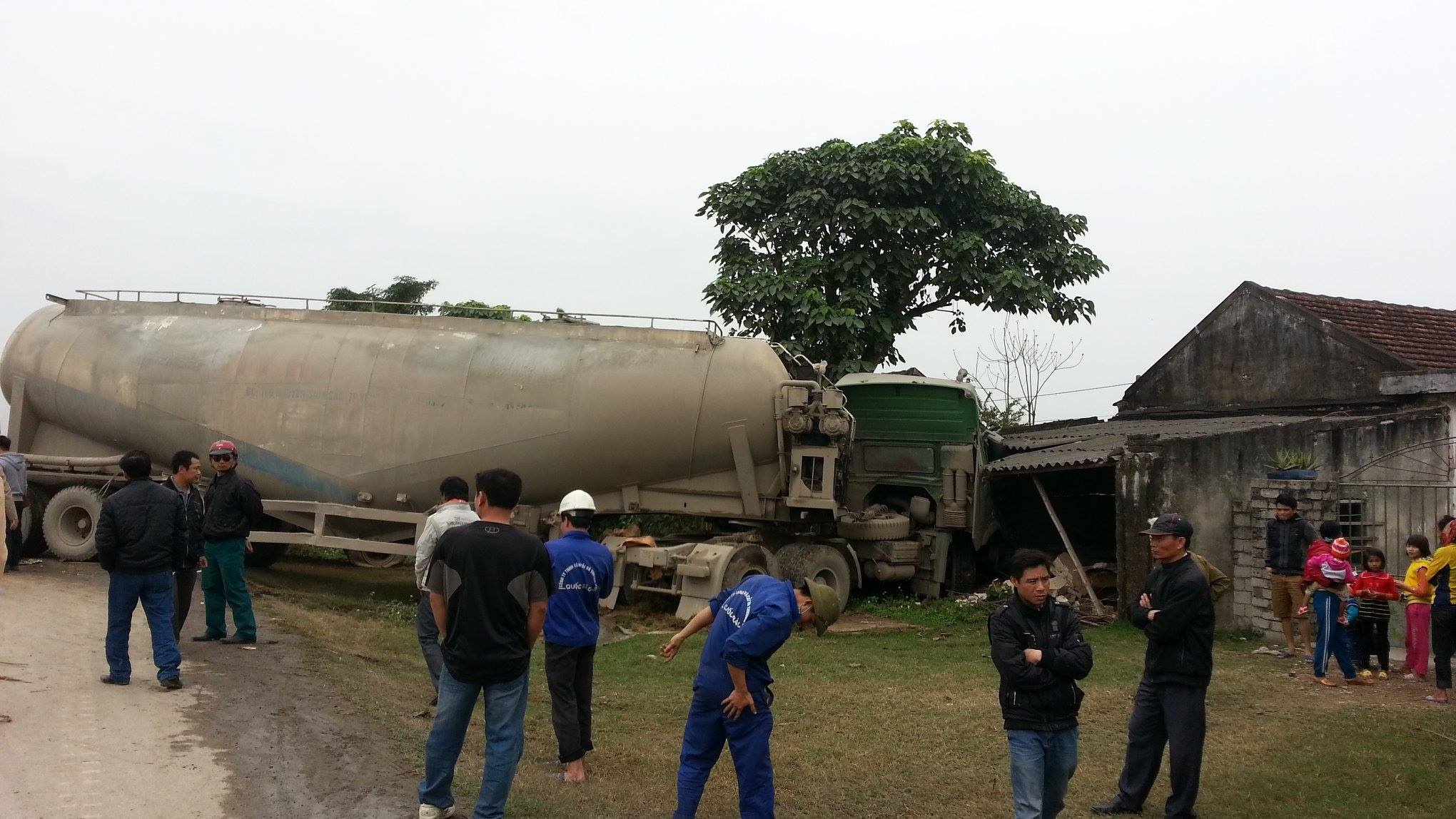 Vụ tai nạn làm 2 tài xế bị thương nặng phải nhập viện cấp cứu, cả 2 đầu xe tải đã bị hư hỏng nặng, tường nhà anh Lý bị vỡ mảng lớn, nứt xung quanh.