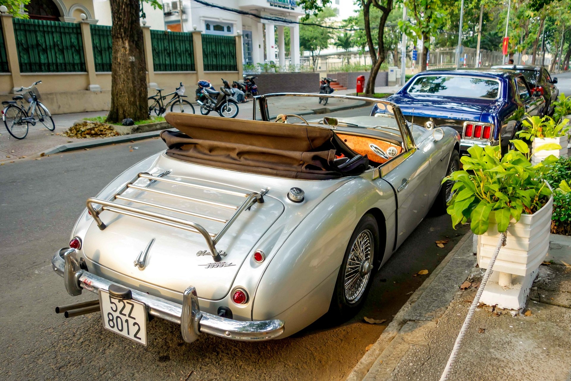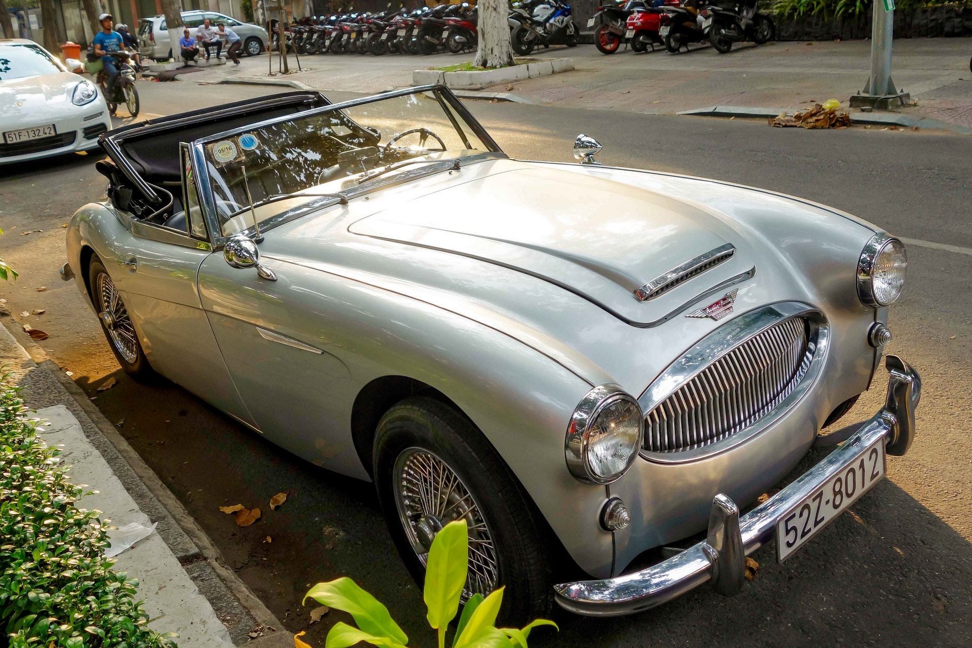 Chiếc Austin Healey 3000 thứ hai tại TP HCM. Model thứ nhất có màu xanh nhạt, trong khi mẫu xe này được sơn màu bạc còn khá mới.