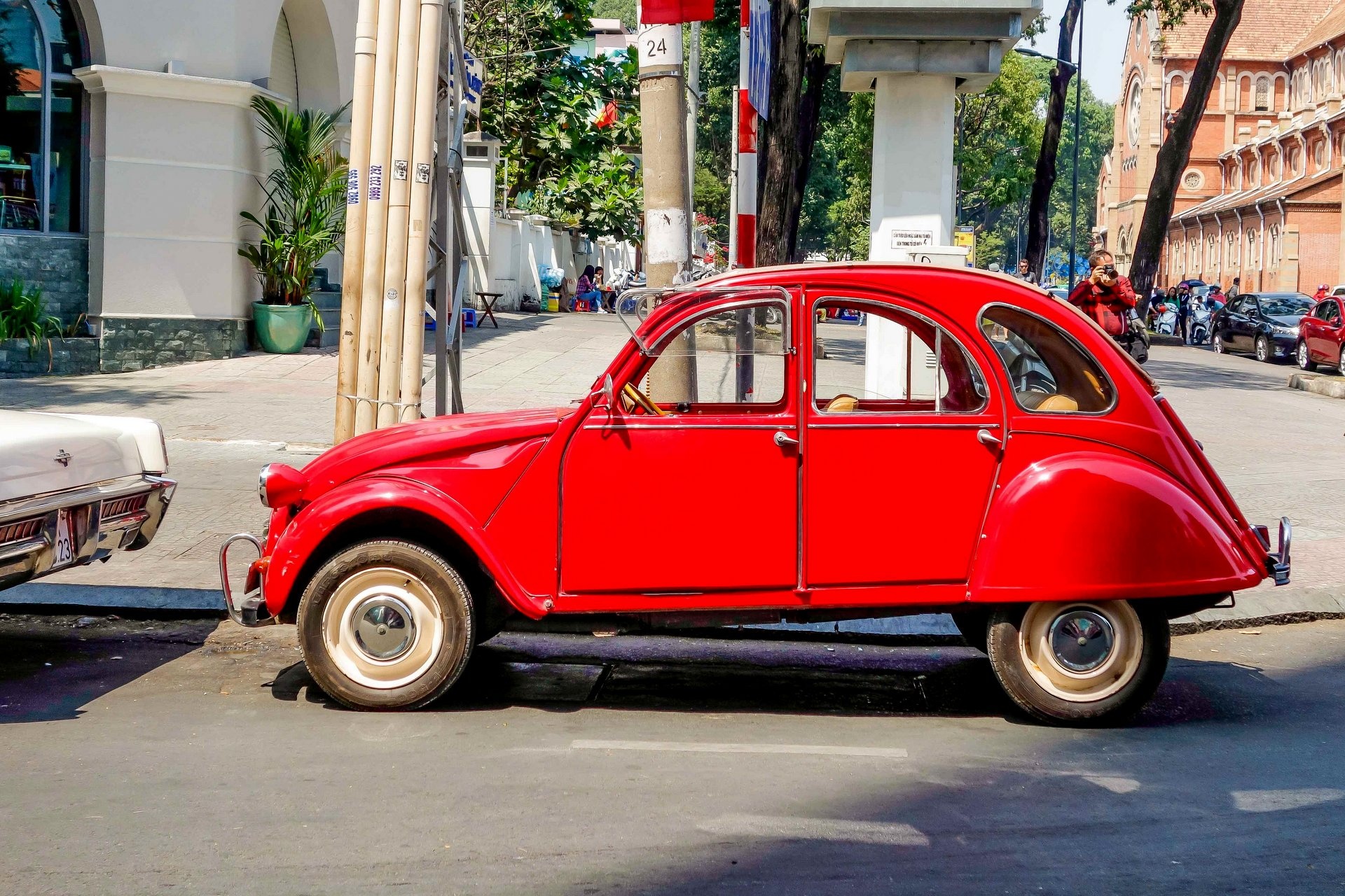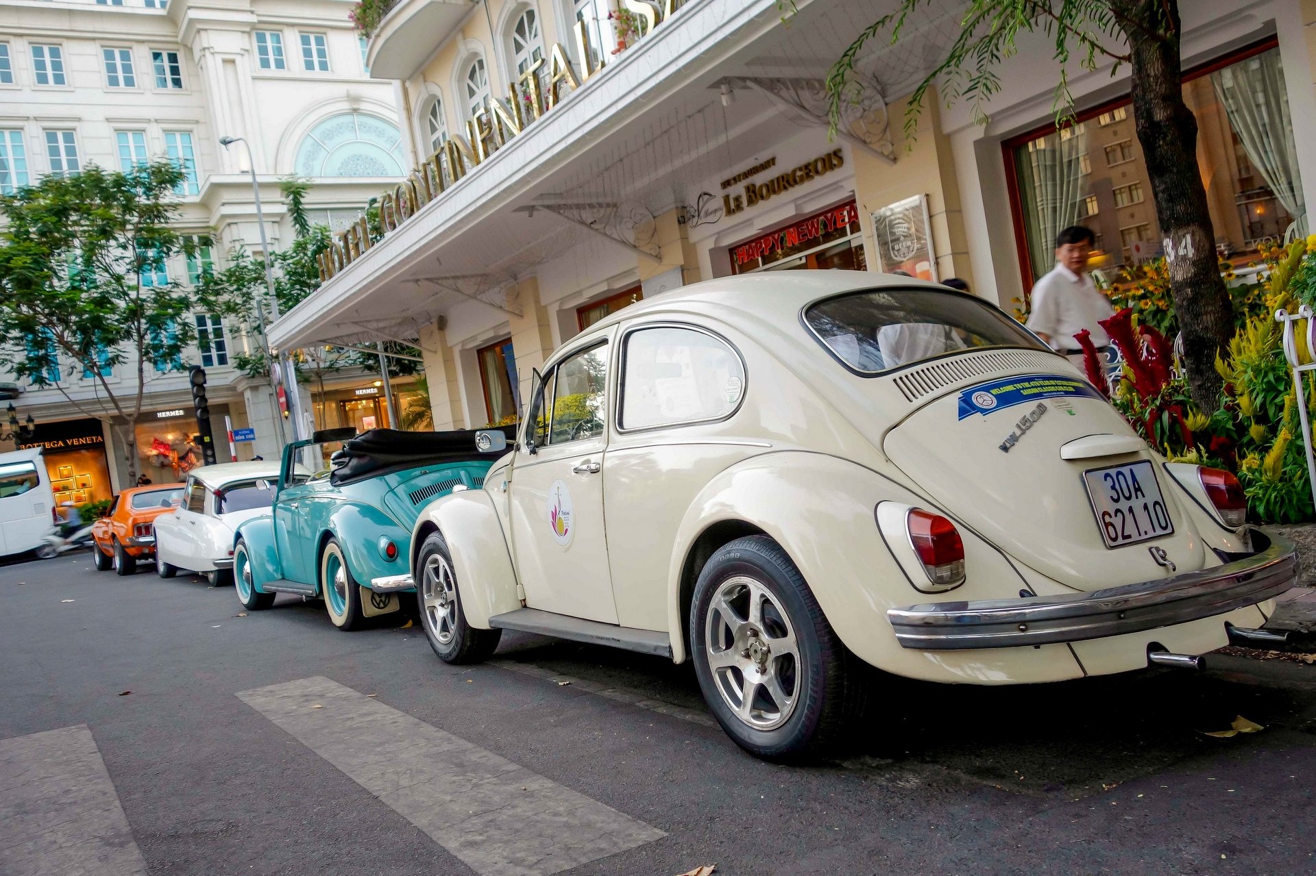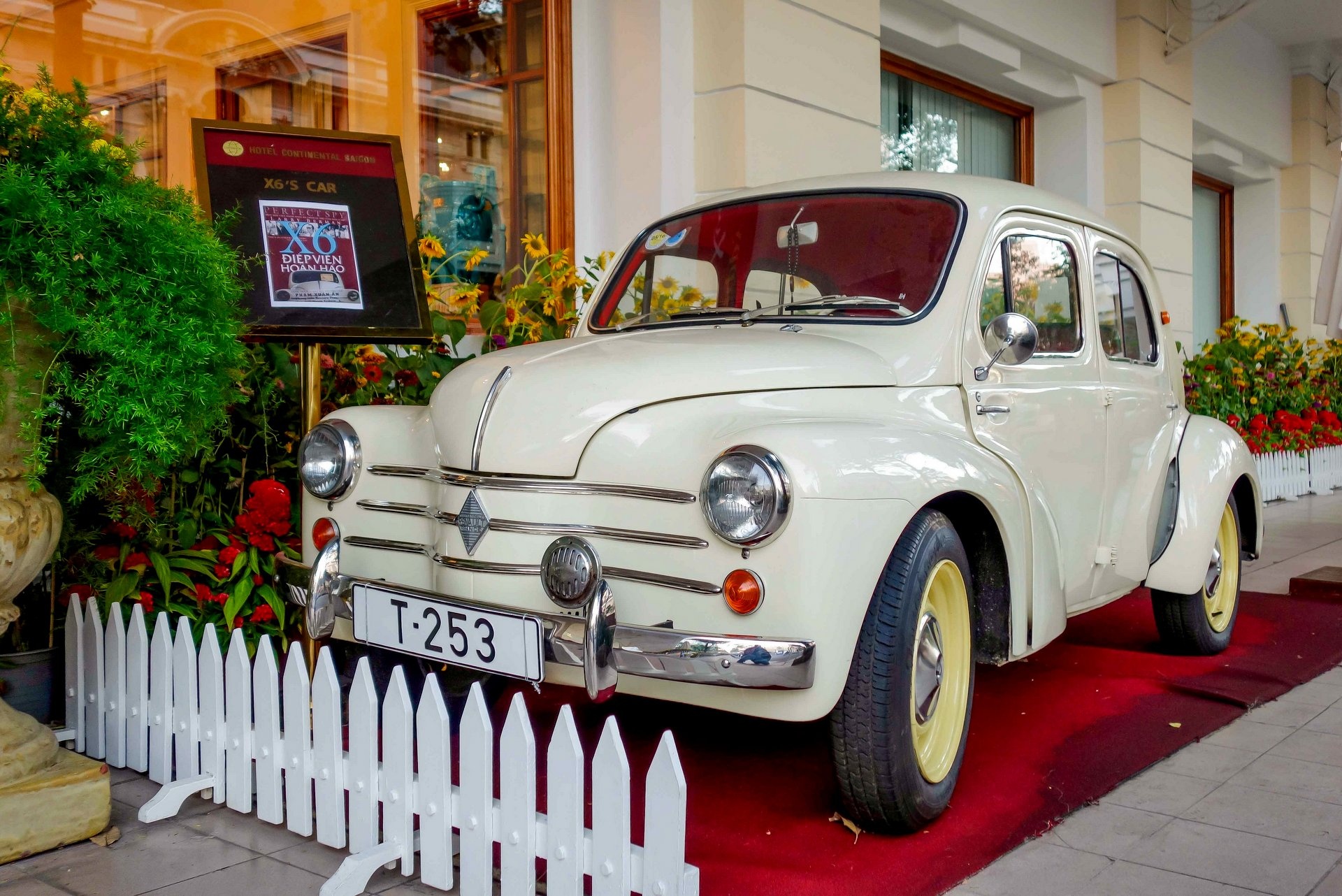 Chiếc Renault 4 CV từng được thiếu tướng tình báo Phạm Xuân Ẩn sử dụng xuất hiện trước một khách sạn ở TP HCM, bên cạnh nhiều mẫu xe độc khác.