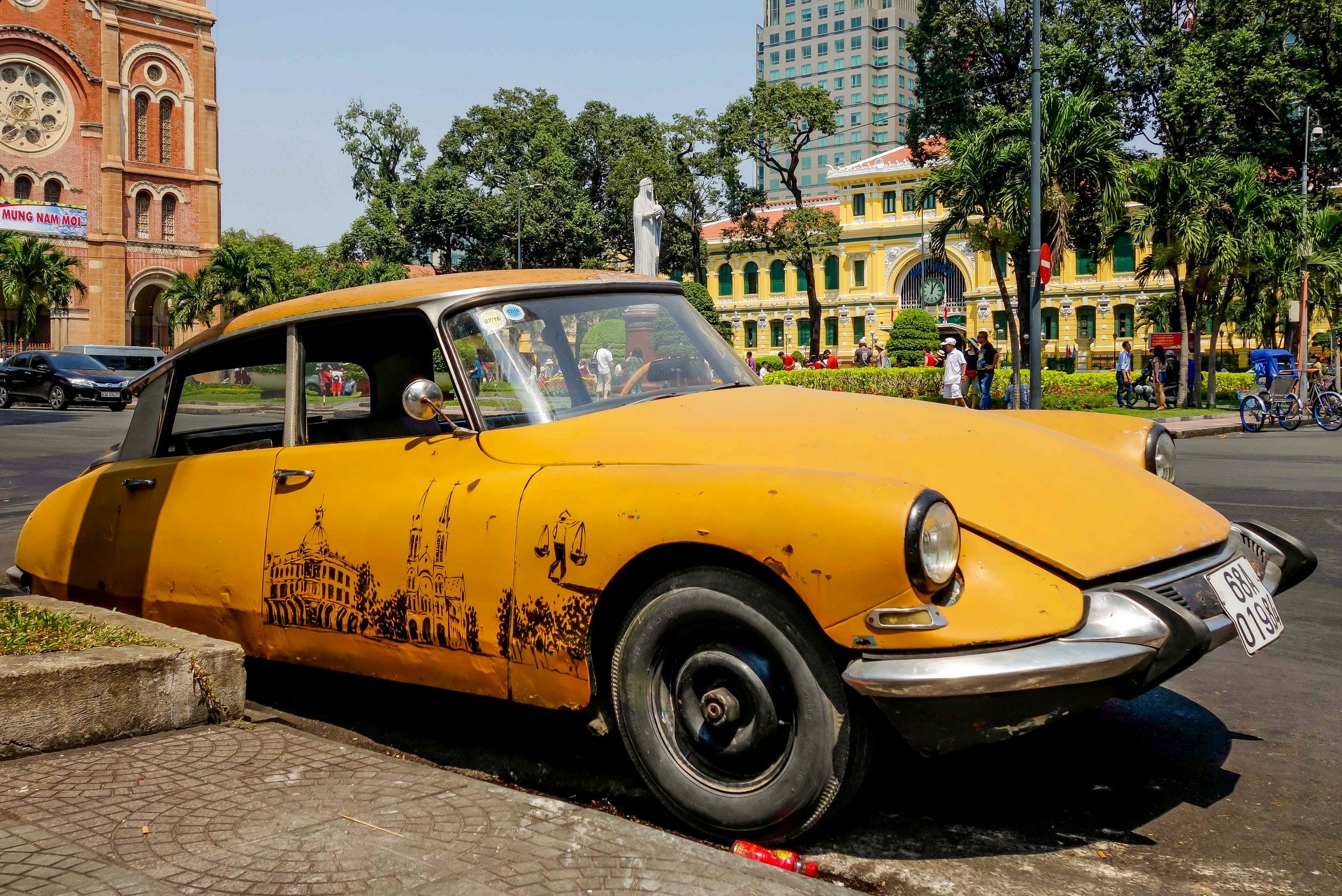 Citroen DS, dòng xe thể thao nổi tiếng của Pháp, từng phổ biến trên đường phố Sài Gòn trước đây. Chiếc xe này được chủ nhân vẽ lên thân những công trình mang tính biểu tượng của Sài Gòn như nhà thờ Đức Bà, thương xá Tax...