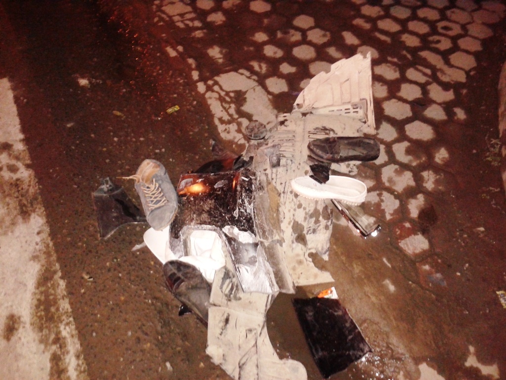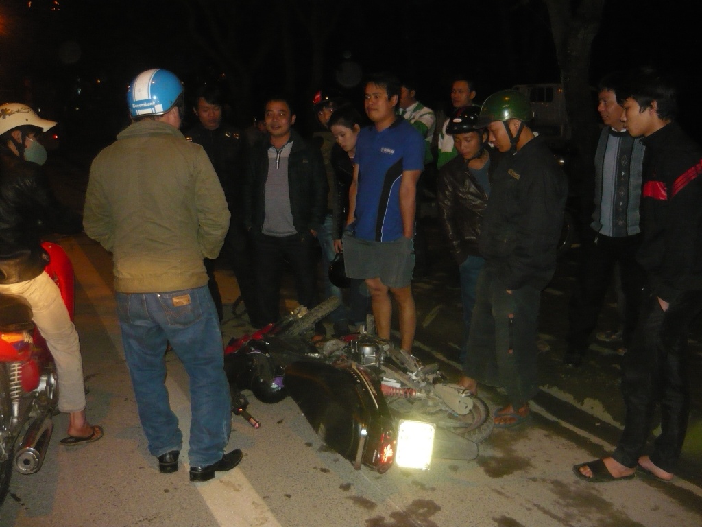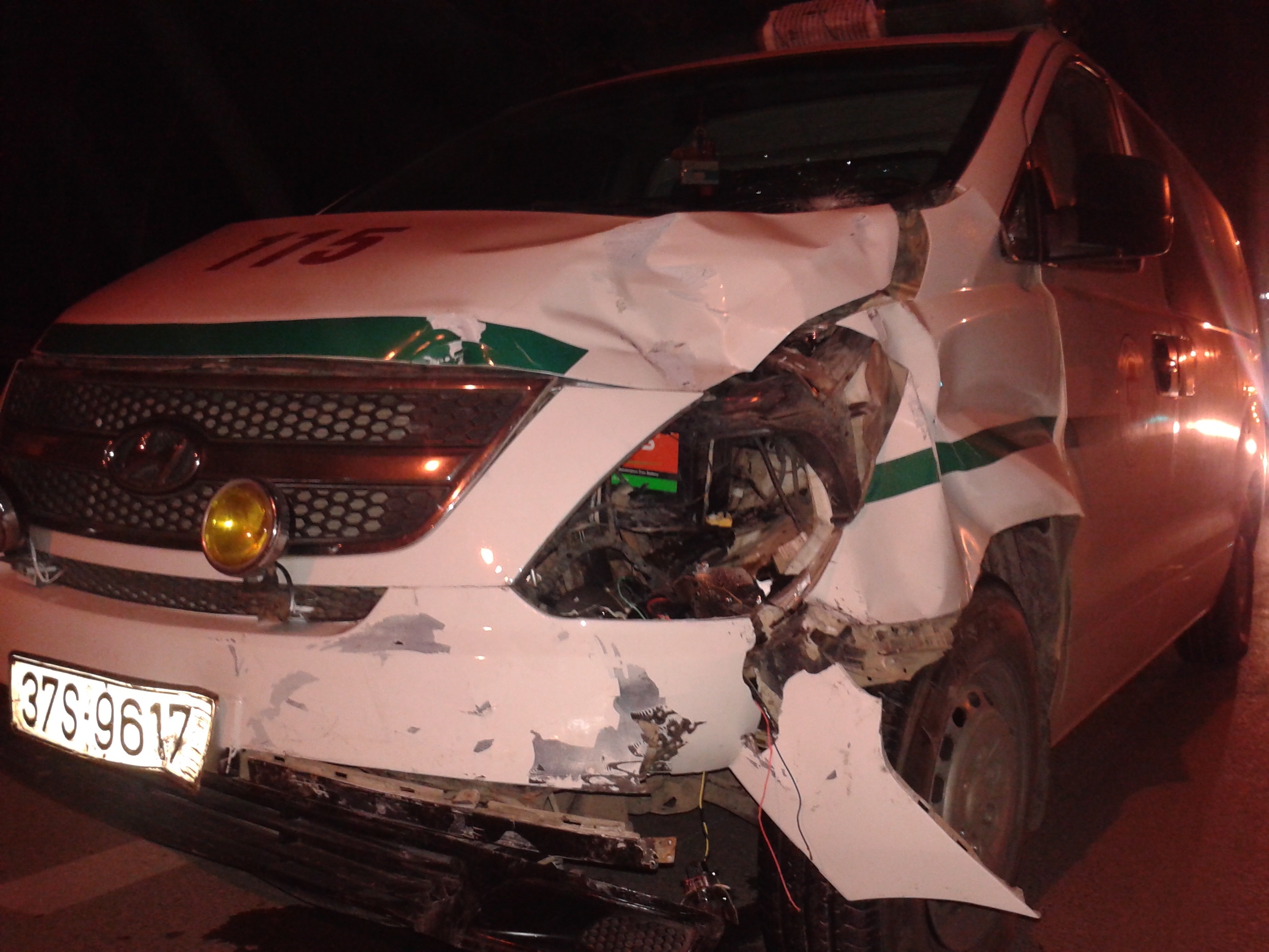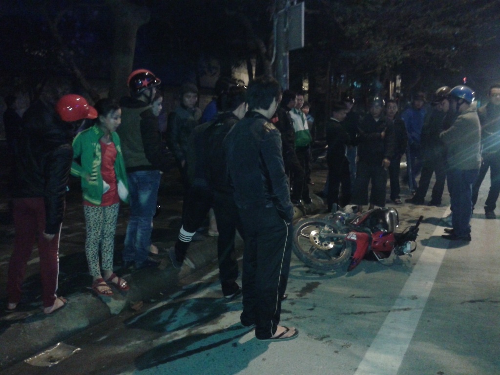 | Chiếc xe máy bị hư hỏng, nhiều bộ phận bị vỡ nát, văng tung tóe trên đường. Phần đầu xe cứu thương bị hư hỏng. Theo nhân chứng, thời điểm đó đèn tín hiệu giao thông hoạt động bình thường, nhưng do người lái xe máy không quan sát xe ưu tiên nên tai nạn xảy ra. |