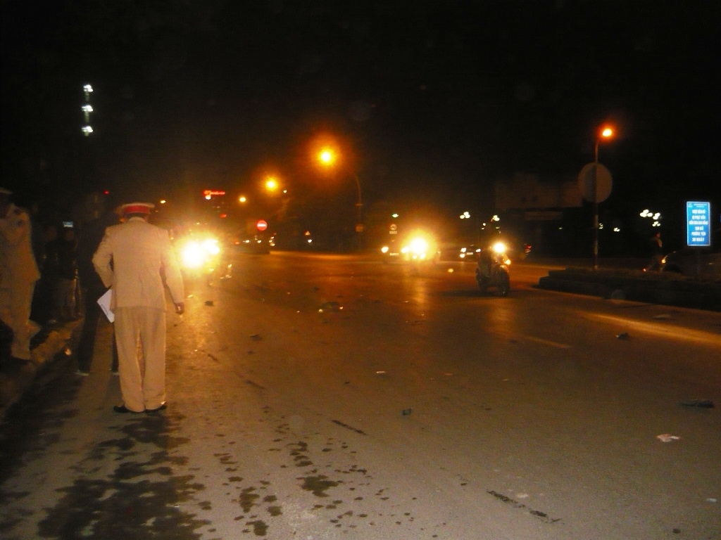 Ngay sau khi nhận tin báo, CSGT TP.Vinh đến khám nghiệm hiện trường, điều tra nguyên nhân vụ tai nạn.