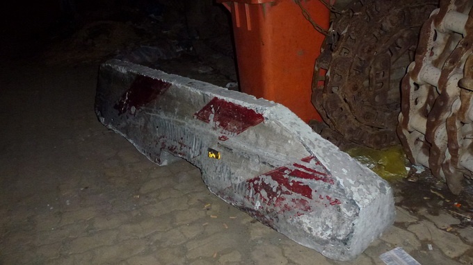 | Khối bê tông bị chiếc xe đặc chủng tông vào |