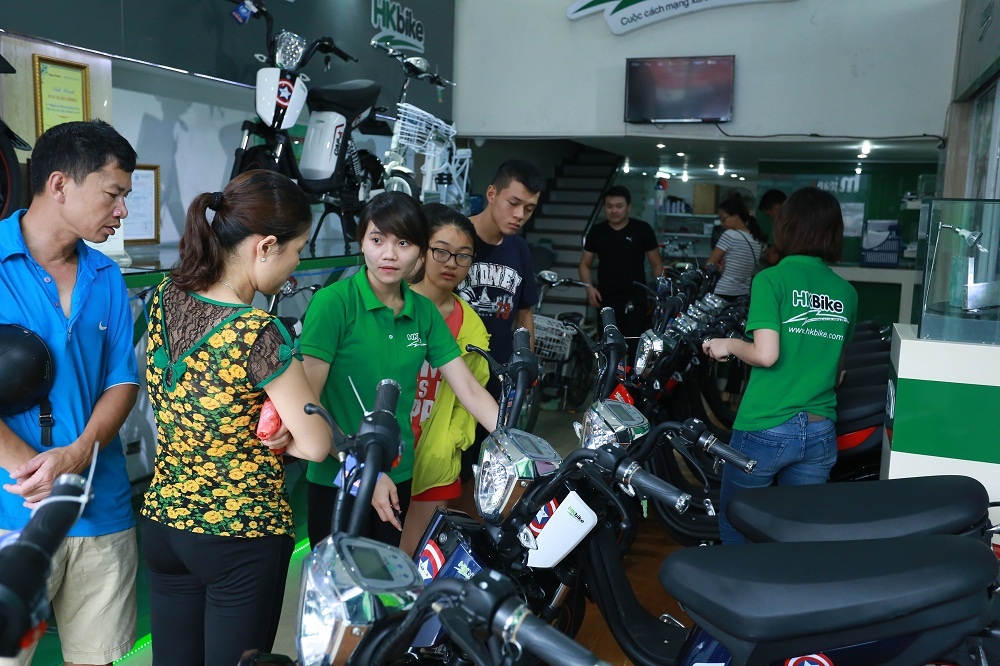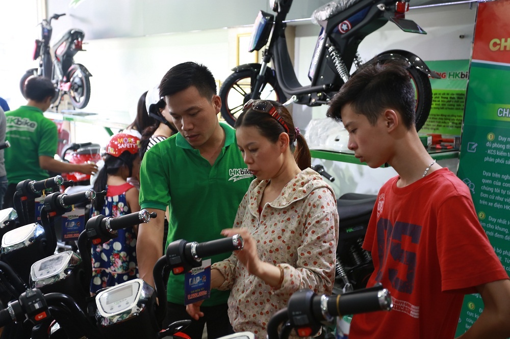 | Lý giải điều này, anh Trần Thế Anh (Quản lý bán lẻ của HKbike) cho hay: "Một phần vì năm học mới đang đến gần, có tới hơn 80% khách hàng là các bậc phụ huynh mua xe cho con em để kịp có xe mới đi khai giảng. Phần khác, nhờ chính sách giá tốt từ phía công ty nên nhiều người tranh thủ cơ hội để được sở hữu xe điện chất lượng cao giá rẻ". |