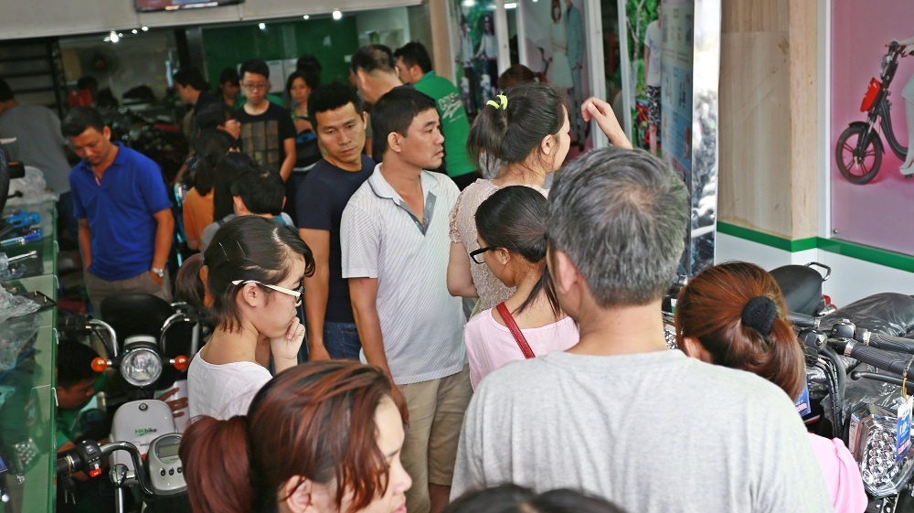 | Lượng khách mua xe rất đông nhưng đội ngũ nhân viên của HKbike vẫn rất tận tình khi tư vấn cho khách. |