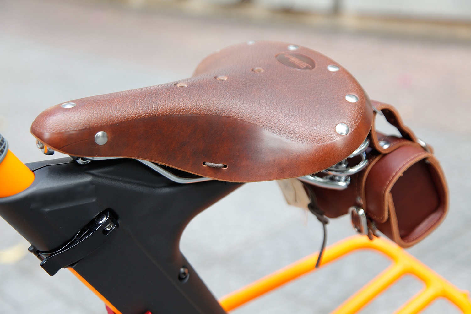 | Yên xe cũng được thiết kế bằng da đi cùng với chiếc túi thời trang.Yên có thể thay đổi chiều cao để phù hợp với từng người. |