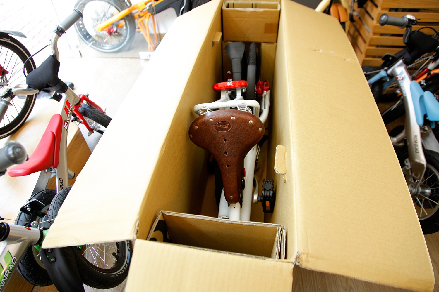 | Dòng xe này được sản xuất tại Anh, được nhập về Việt Nam và bán tại những cửa hàng chuyên dụng. Trong ảnh là chiếc xe nguyên hộp mới được nhập về tại cửa hàng trên đường Mạc Đĩnh Chi, quận 1. |