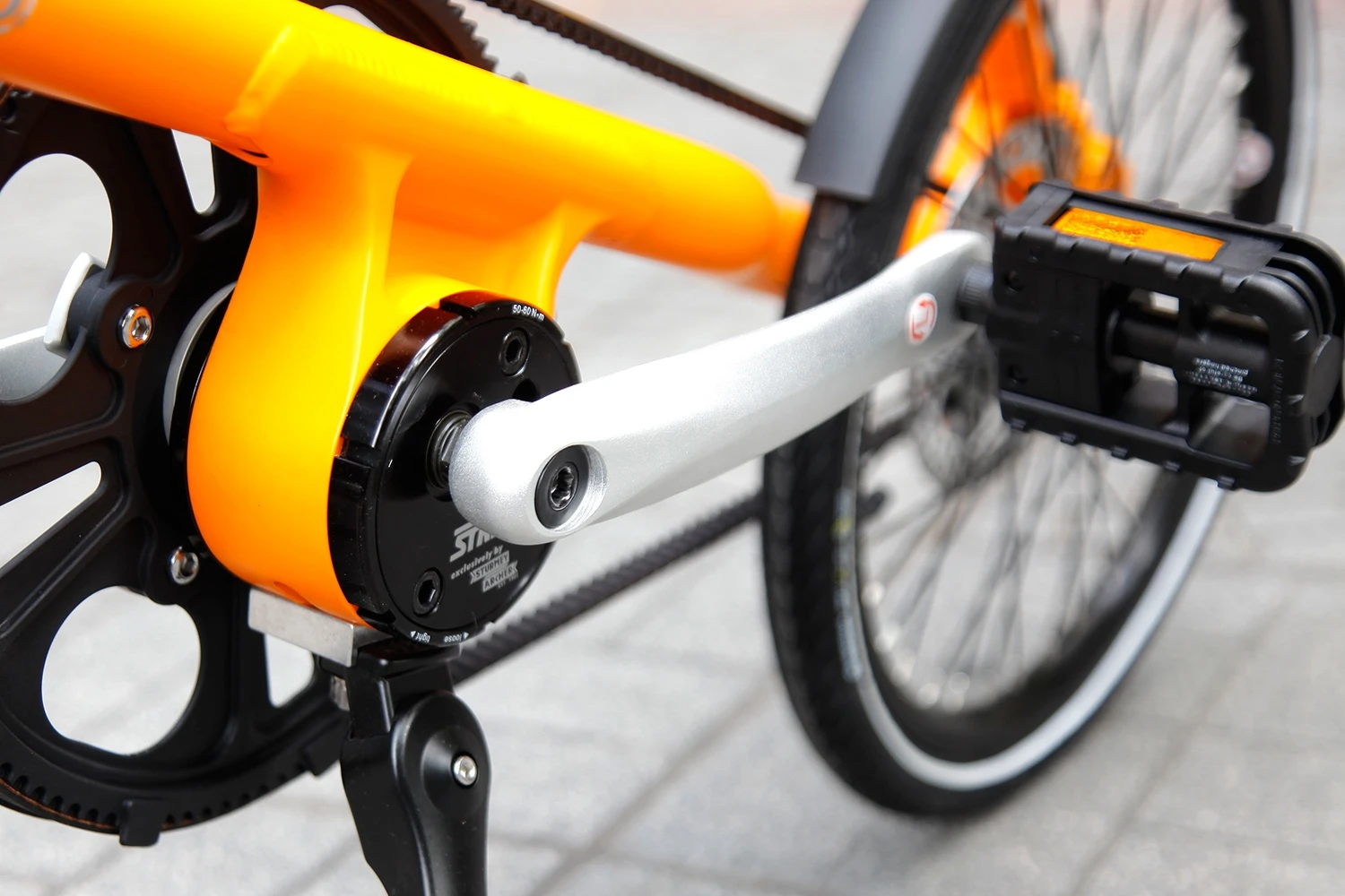 Khung xe đặc biệt hình tam giác. Thiết kế khung đỡ bánh xe một bên giúp bạn dễ dàng thay lốp và săm xe. Chiều dài cơ sở của xe ngắn. Trong các dòng xe đạp, nó chiếm không gian ít hơn nhiều so với hầu hết các loại xe đạp khác. Tổng trọng lượng chỉ 10 kg, với kích thước 114 x 51 x 23 cm, xe có thể chở trọng tải lên đến 100 kg. Với thiết kế độc đáo, việc gấp và mở xe chỉ cần chưa đến 10 giây.