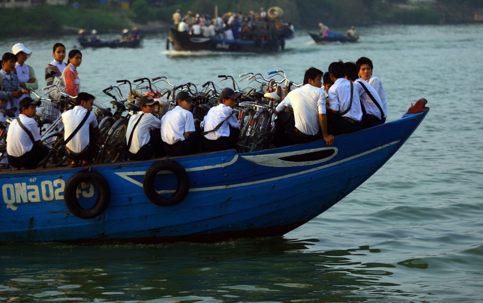 Nhiều tháng nay, học sinh từ Cẩm Nam sang Hội An cũng chủ yếu sử dụng xe đạp để đi học.