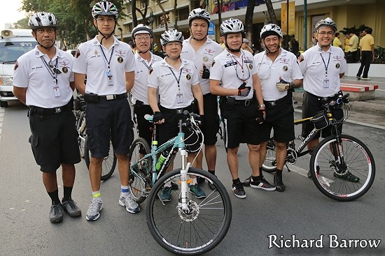 | Đường phố tại Bangkok, Thái Lan, luôn đông đúc và chật chội. Ngoài ra, một số làn đường quá hẹp khiến việc sử dụng ôtô, xe máy để truy bắt tội phạm khá khó khăn. Vì vậy, xe đạp trở thành phương tiện hữu ích trong những chuyến đi kiểm tra an ninh đường phố của cảnh sát. Ảnh: Reviewtravel |
