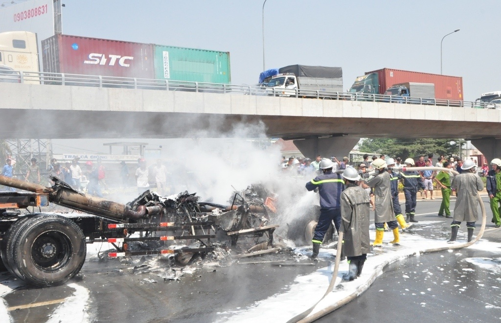 | Khoảng 20 phút sau khi PCCC có mặt, đám cháy được dập tắt. Giao thông qua khu vực ngã ba Tân Vạn bị ùn tắc nghiêm trọng. |