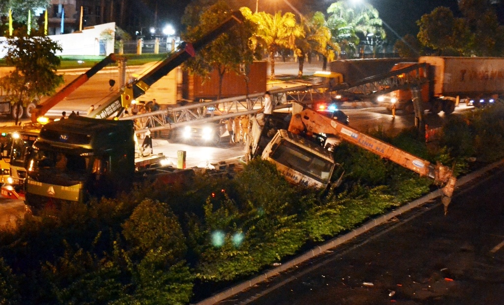 Phần đầu khung sắt rơi xuống đường đập trúng ông Trần Văn Lớp lưu thông cùng chiều khiến nạn nhân tử vong tại chỗ. Tài xế xe đầu kéo rời hiện trường ngay sau đó.