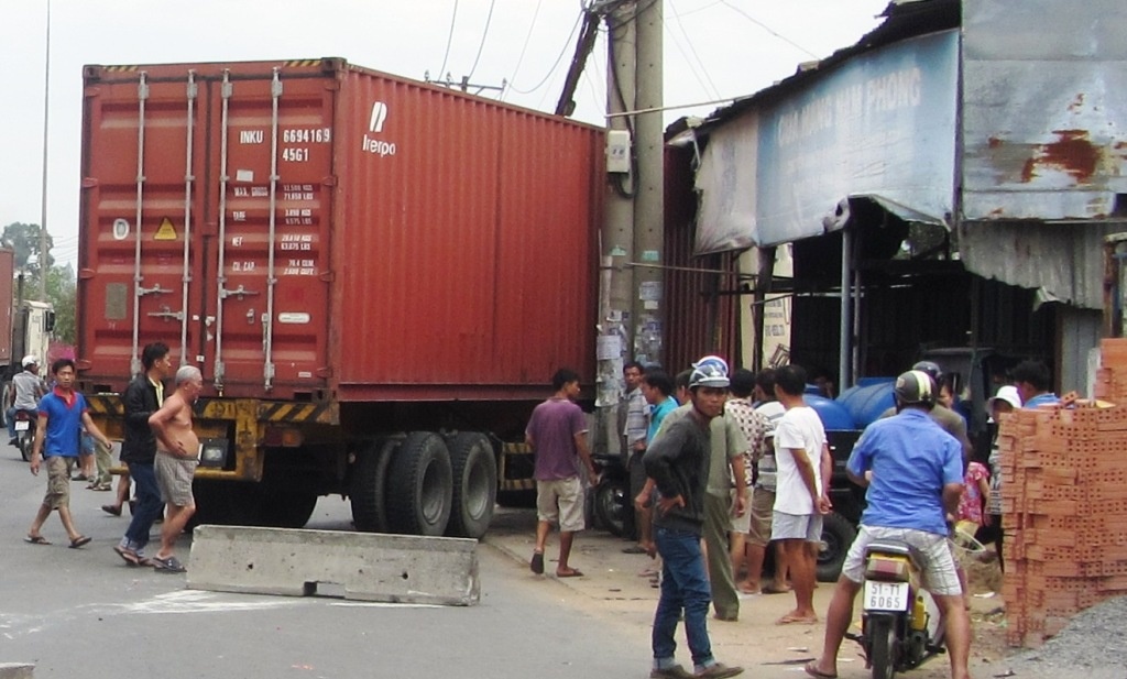 Chiều 23/3, một xe đầu kéo chở thùng hàng container loại 40 feet lưu thông trên quốc lộ 1A, hướng từ cầu vượt Sóng Thần đi cầu vượt Trạm Hai.