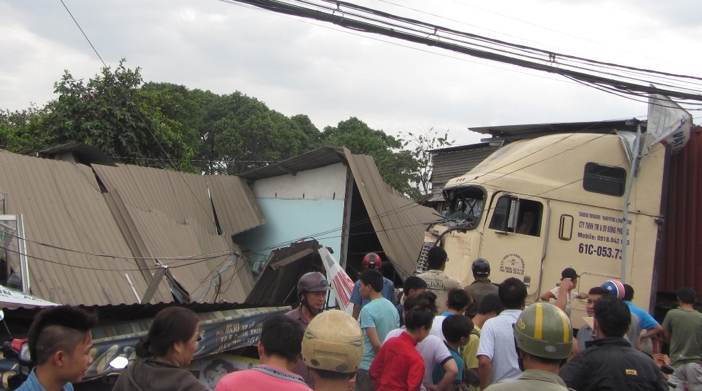 Do xe đầu kéo chạy với tốc độ cao, lực tông mạnh khiến cả ba ngôi nhà trên đổ sập hoàn toàn. Thời điểm vụ tai nạn xảy ra, có 9 người trong 2 căn nhà (2016 và 1028). Chị Nguyễn Thị Mỹ Lệ (40 tuổi, chủ tiệm làm tóc trong nhà 1028) kể: “Lúc đó gia đình tôi có hai thành viên cùng ba khách. Đang làm tóc cho khách thì nghe nhiều tiếng đùng đùng và bức tường, mái nhà đổ sụp xung quanh. Không còn đường chạy, chúng tôi chỉ còn cách nằm xuống nền nhà cho đến khi không còn nghe tiếng động nữa. May mắn cả năm người không ai bị thương”.