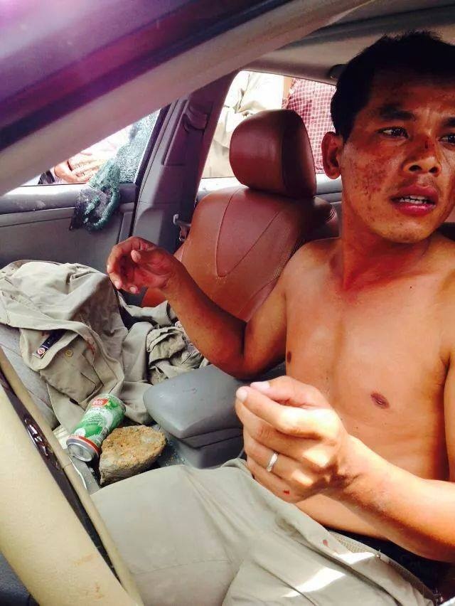 | Tài xế bị những người bức xúc đánh đập, lôi ra khỏi xe. |