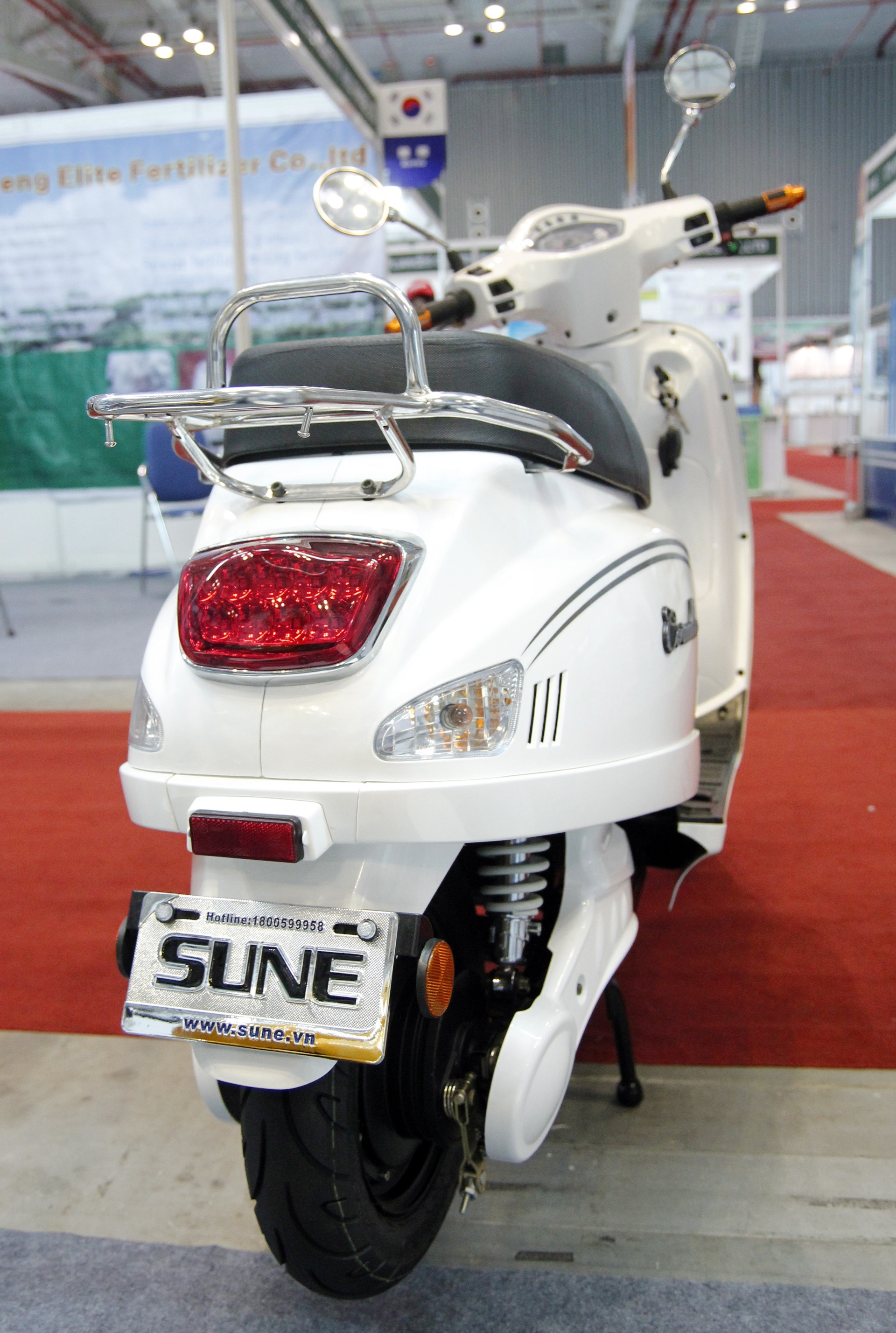 | Chiếc xe máy điện có tên Corallo được sản xuất bởi Sunemotor, một công ty Đài Loan có nhà máy tại tỉnh Tây Ninh. |