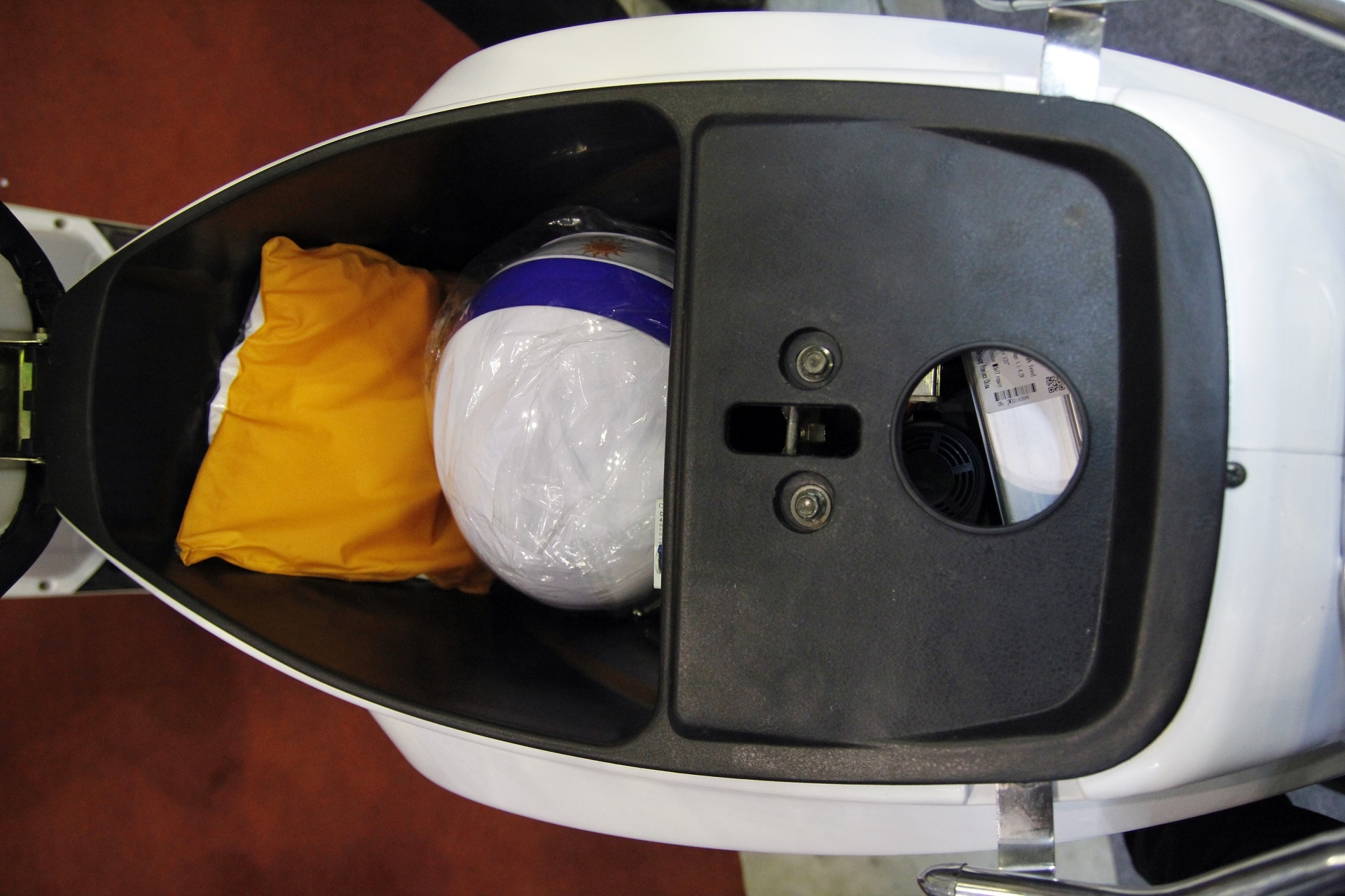 | Bên dưới yên xe là cốp rộng rãi, tương tự như trên những chiếc xe tay ga phổ biến. Cốp đủ chứa 2 mũ bảo hiểm nửa đầu và túi xách hay những món đồ lặt vặt. |