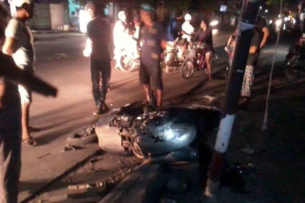 | Một trong những chiếc xe máy gặp nạn tại hiện trường vụ tai nạn. |