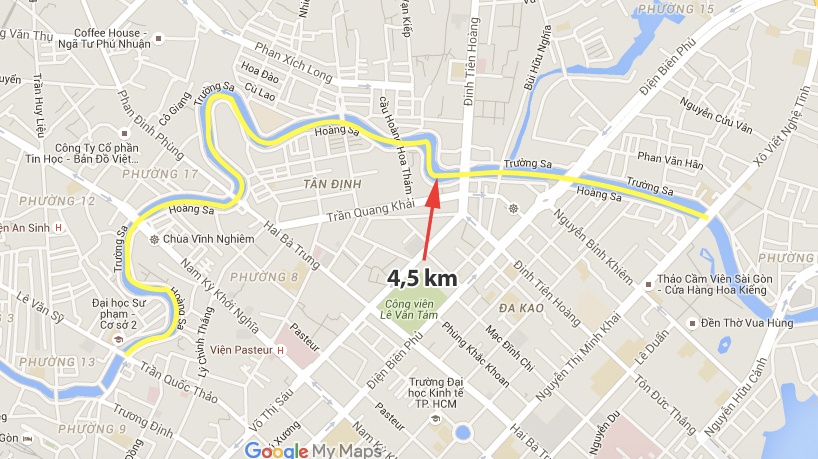 Theo đó, lộ trình dự kiến của tuyến xe điện khoảng 4,5 km, xuất phát từ bến thuyền du lịch gần cầu Lê Văn Sỹ (phường 7, quận 3) theo đường Hoàng Sa đến bến thuyền gần cầu Thị Nghè (phường Đa Kao, quận 1) và ngược lại.