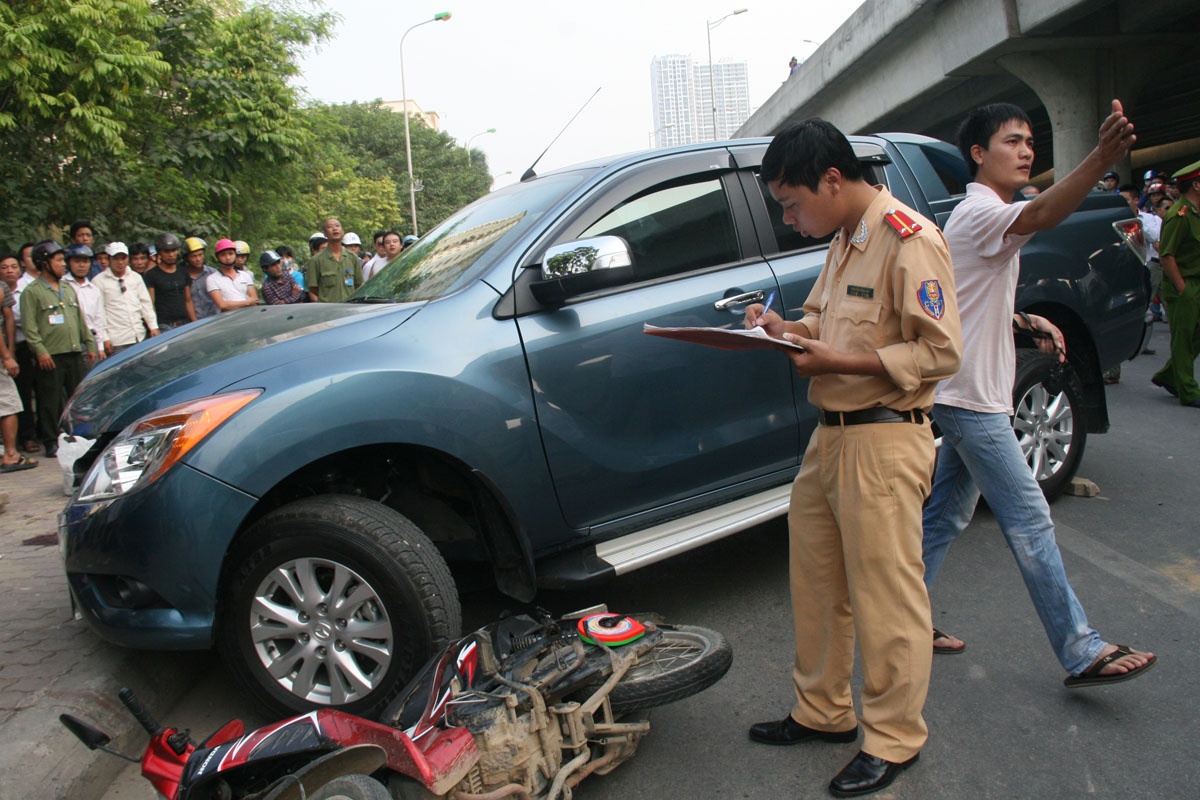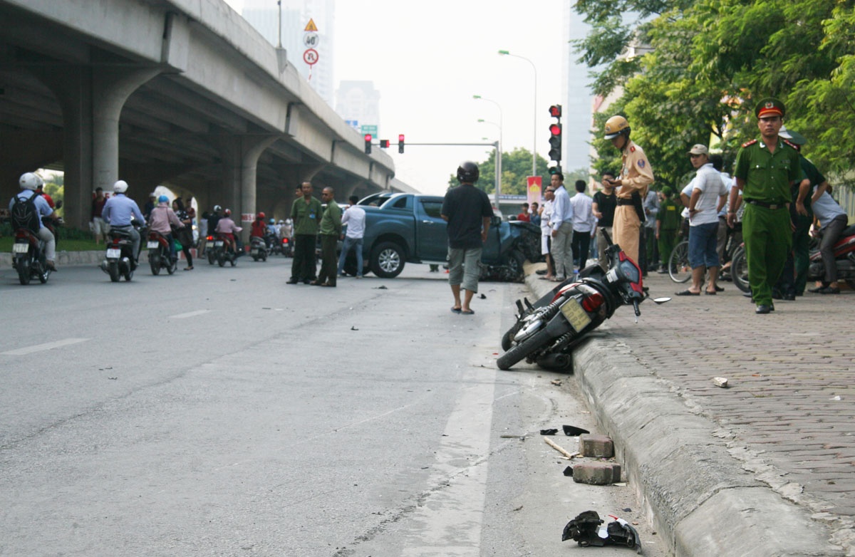 Theo một số nhân chứng, vào thời điểm trên, chiếc ôtô bán tải BKS 98C di chuyển từ hướng đường Khuất Duy Tiến lên Phạm Hùng thì va chạm với một ôtô đi cùng chiều. Sau đó chiếc xe này tông tiếp vào 2 xe gắn máy đang lưu thông trên đường.