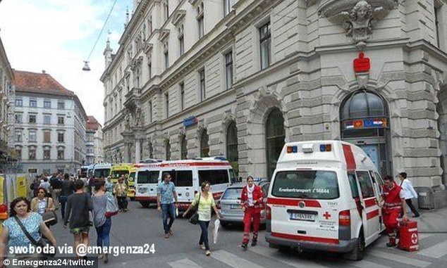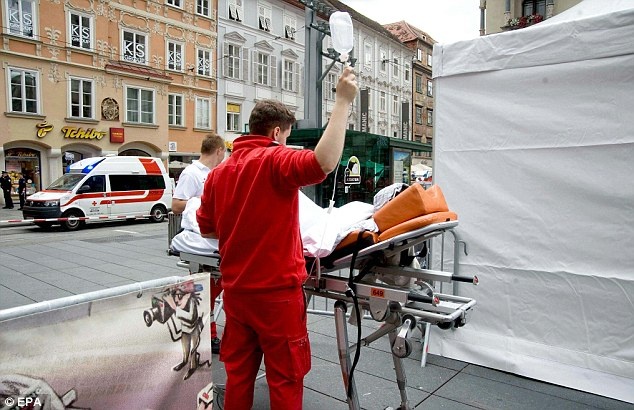 Nhân viên y tế nhanh chóng xuất hiện để chăm sóc người bị nạn. Thống đốc bang Steiermark, ông Hermann Schuetzenhoefer, cho hay, ít nhất một trong những nạn nhân bị thương đang trong tình trạng nguy kịch. Ảnh: EPA