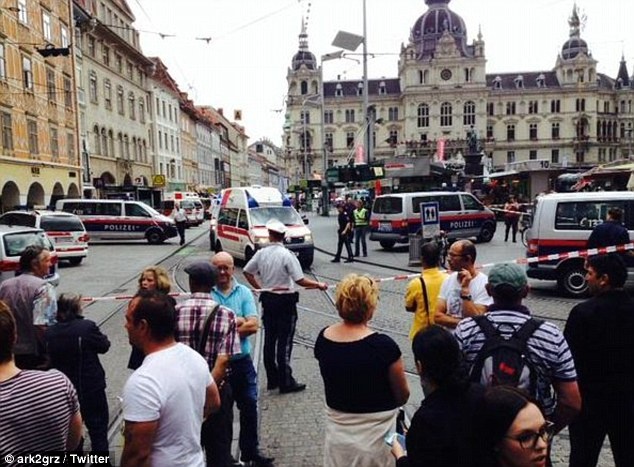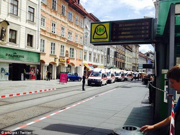 Cảnh sát phong tỏa hiện trường vụ tai nạn tại thành phố Graz, thủ phủ bang Steiermark. Ảnh: Twitter