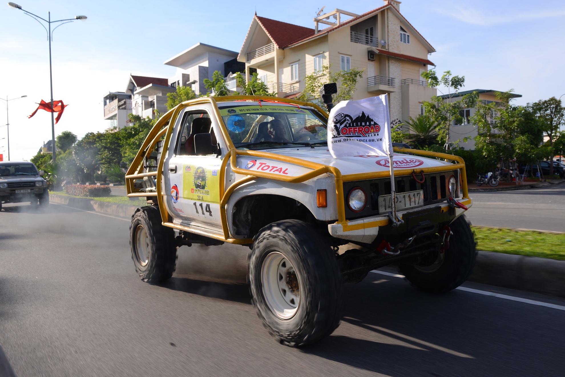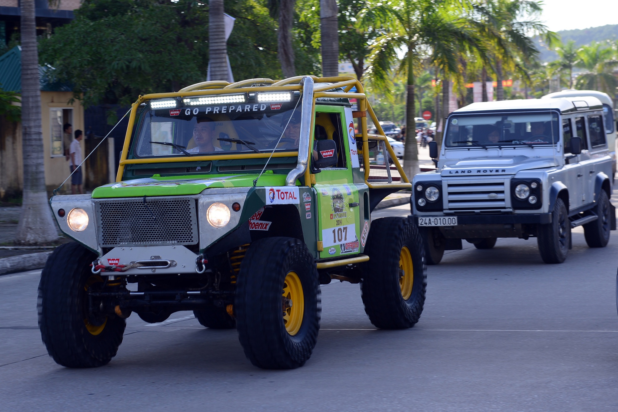 | Chiều 24/8, hơn 30 chiếc ô tô khủng tham gia cuộc thi Off Road 2014 tại Quảng Ninh đã diễu hành một vòng Tuần Châu - Hạ Long - Tuần Châu trước ngày khai mạc giải. |