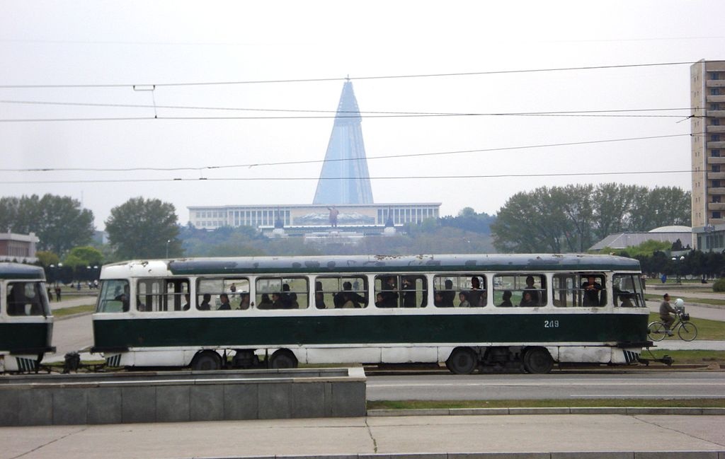| Đường phố Bình Nhưỡng khang trang, rộng rãi nhưng rất ít xe cộ. |